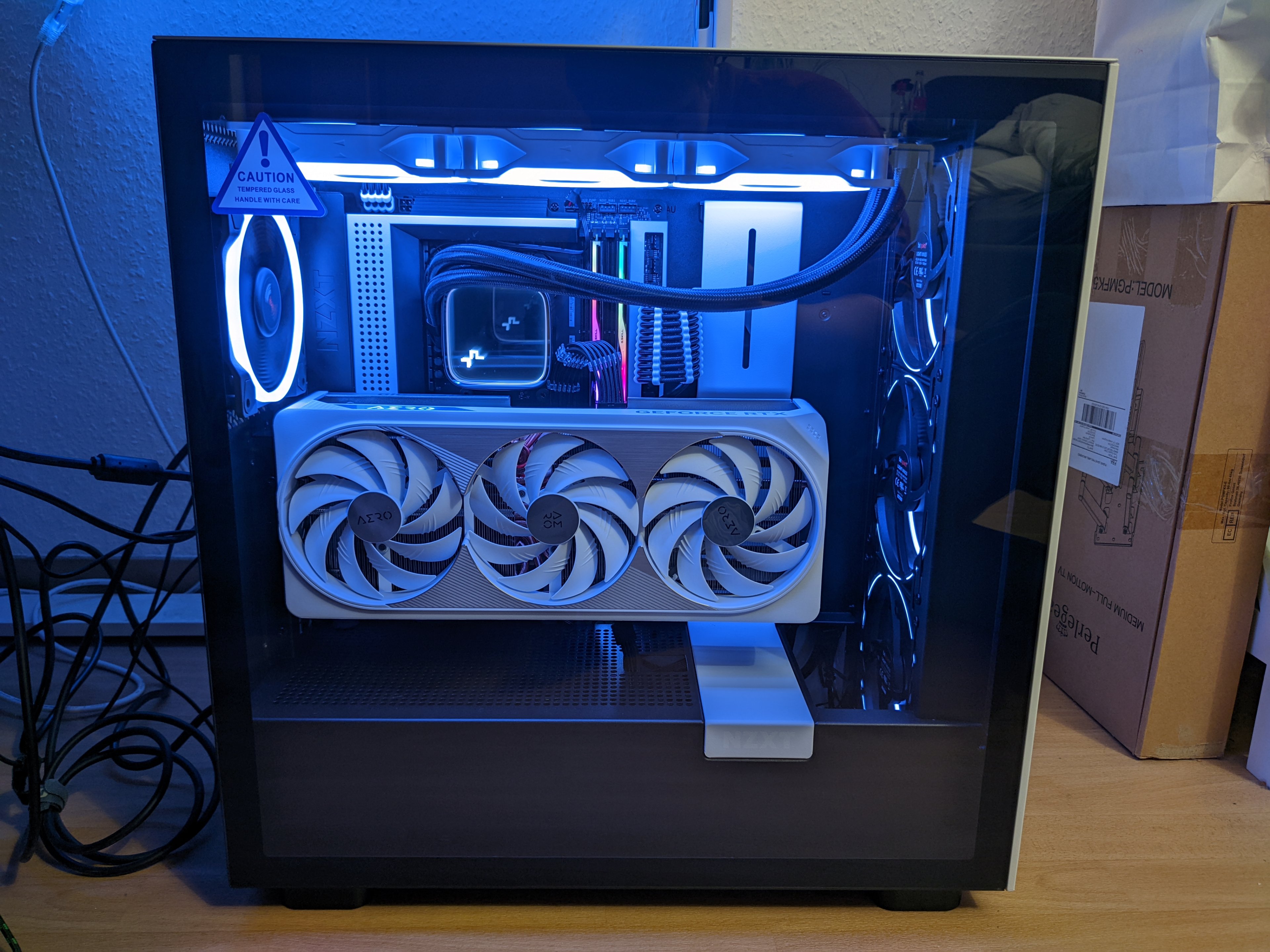 aber vertikal hat, soweit ich weiß, keine besonderen Probleme bereitet. Mal abgesehen davon das die Lüfter an der Frontscheibe kleben und die Abwärme im schlimmsten Fall gleich aufs Board pusten