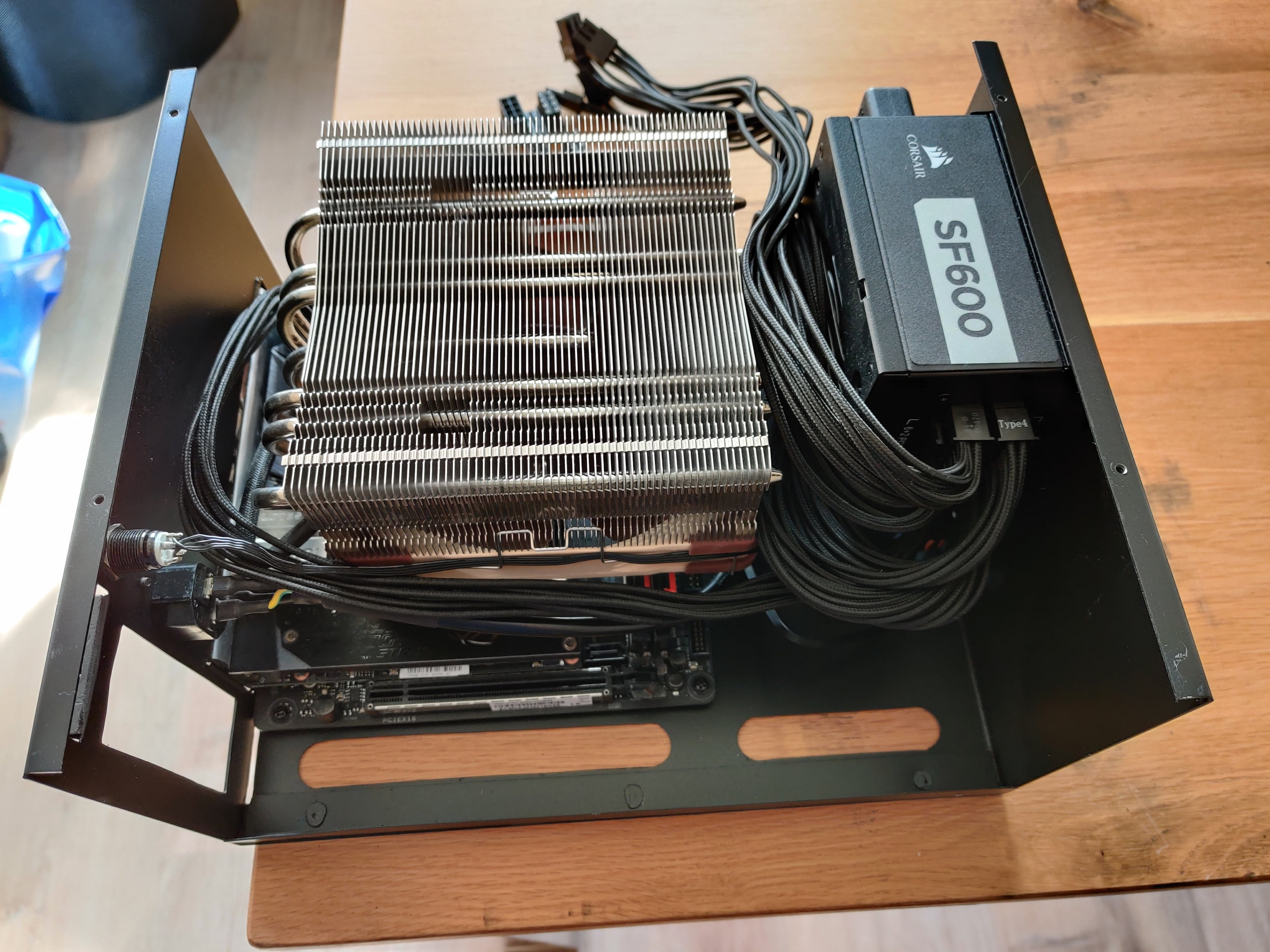 Und zum Thema SFX vs. ATX: Wenn man ein ordentlich leistungsstarkes ATX-Netzteil kauft, kann das schon vergleichsweise recht klobige Größen erreichen, was das Case wieder "entschlankt" hätte. Platz muss dann ja da sein. So hat man sich bewusst für SFX entschieden. Finde ich okay.