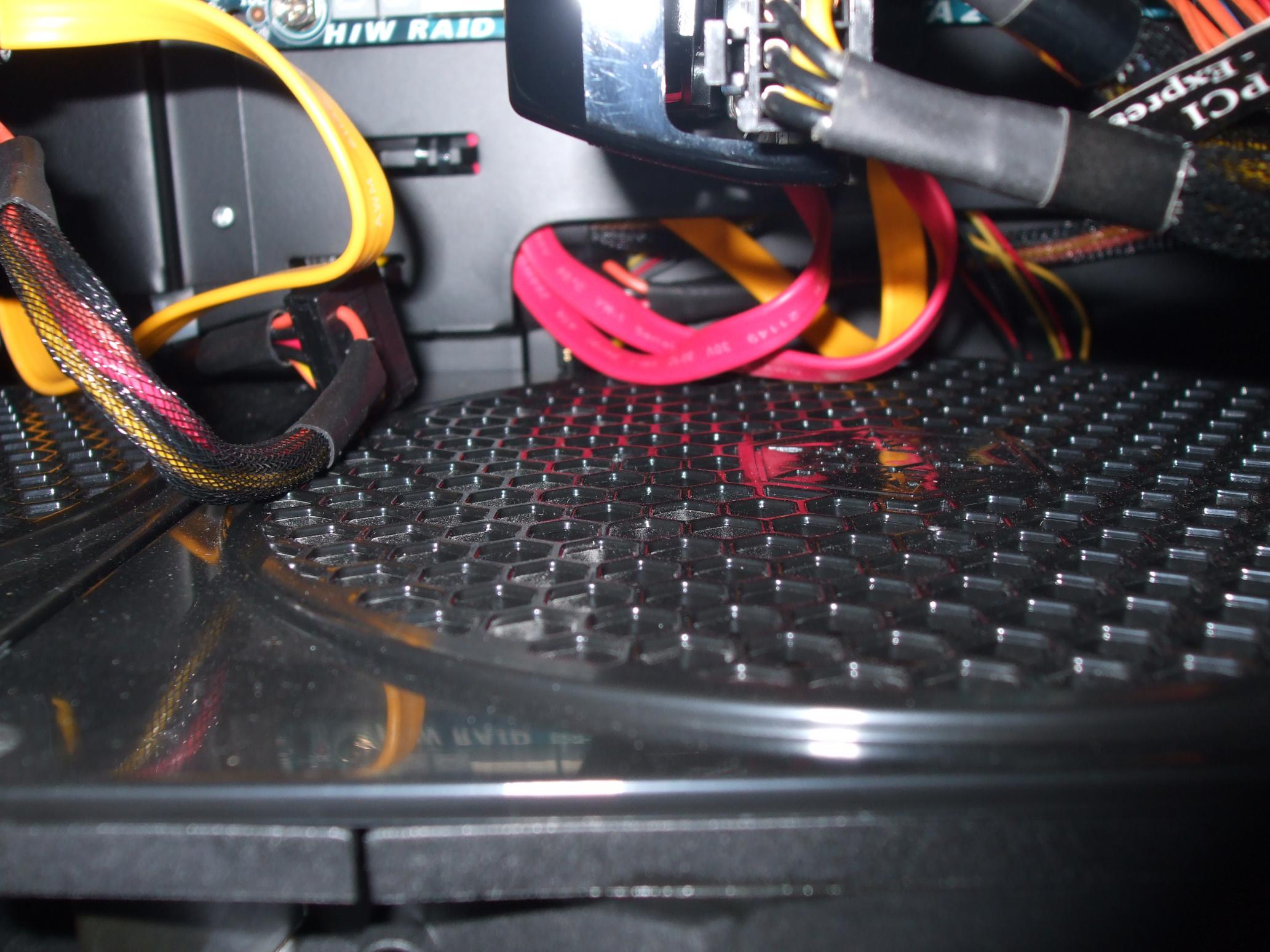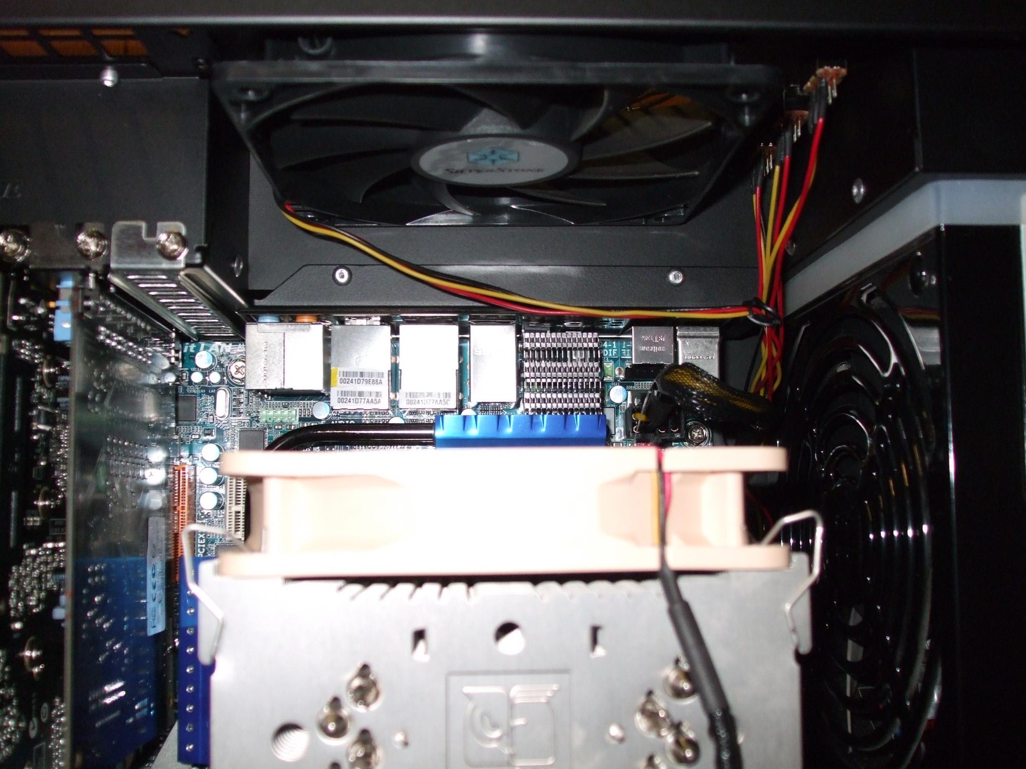 bei mir denke ich, ist der Mugen mit den 2 Lüftern zu groß, so das der spalt zwischen CPU kühler"lüfter" und oberen Lüfter zu klein ist, und der Obere Lüfter so gesehen nur die luft die vom Kühler kommt zieht und nicht die, die auch im gehäuse ist.