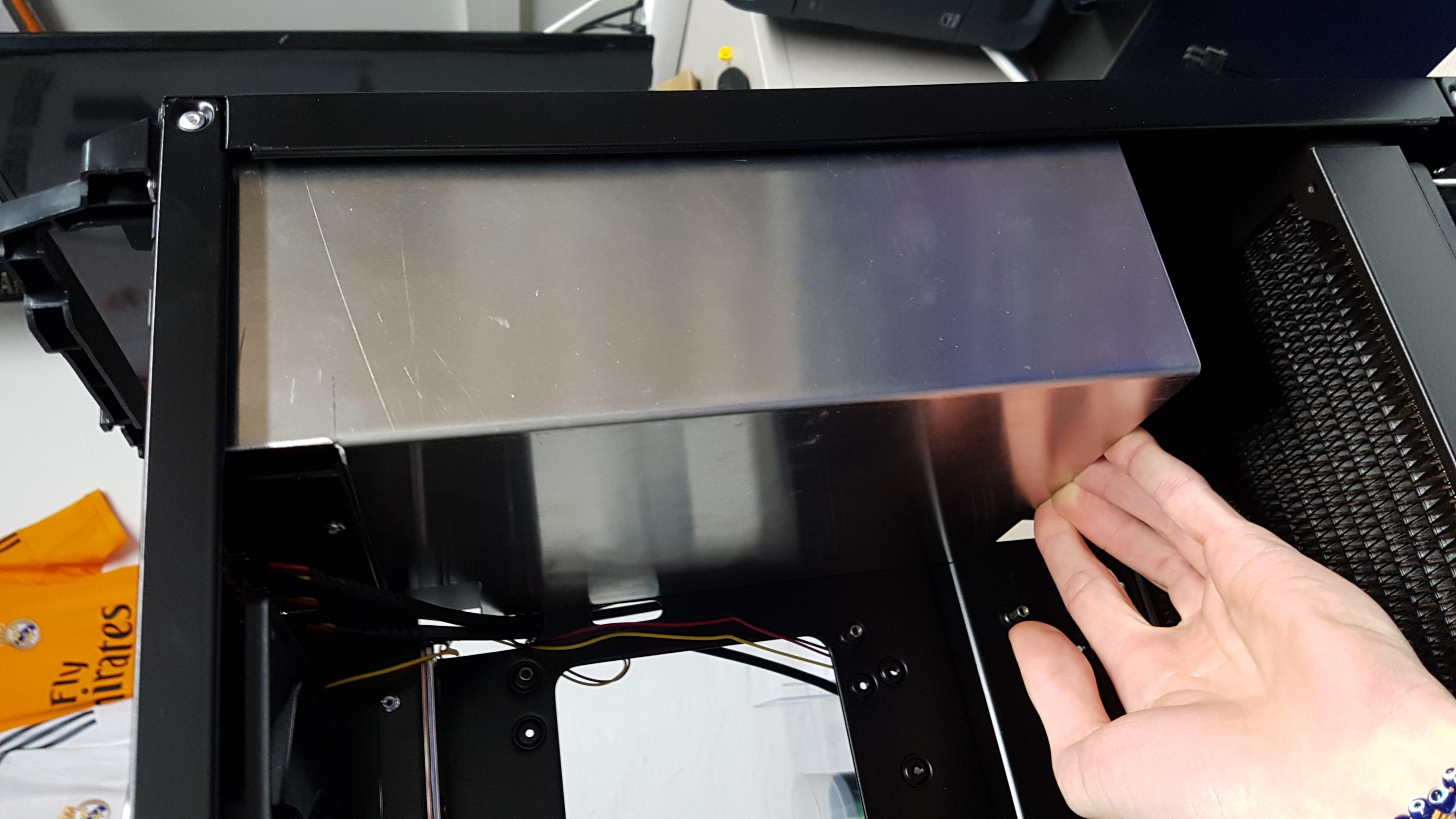 - Die Laufwerks- und Festplattenschächte werden entfernt und an der Stelle wo dann eben der AGB hängt möchte ich eine Backplate anbringen.