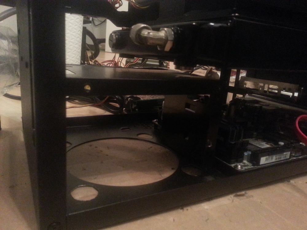 Also nochmal von vorne. Radiator samt Lüfter raus. Netzteilhalterung einbauen und dann wieder Radiator mit Lüfter rein. Passt um 3mm. Zum Glück hat der Radiator auch nach hinten ausgerichtete Anschlüsse.