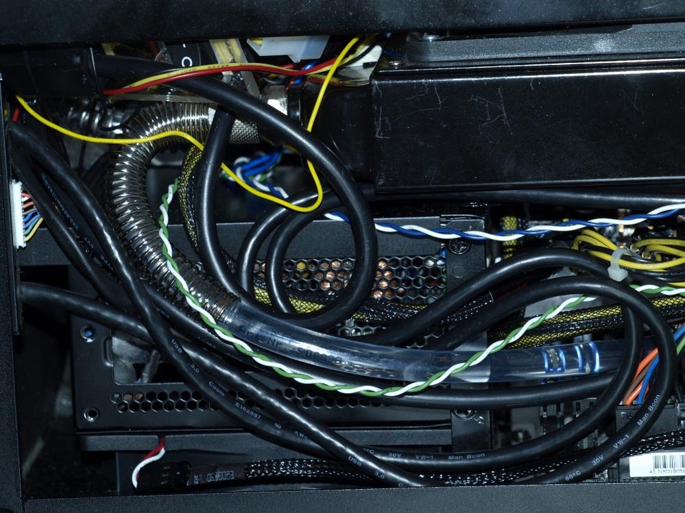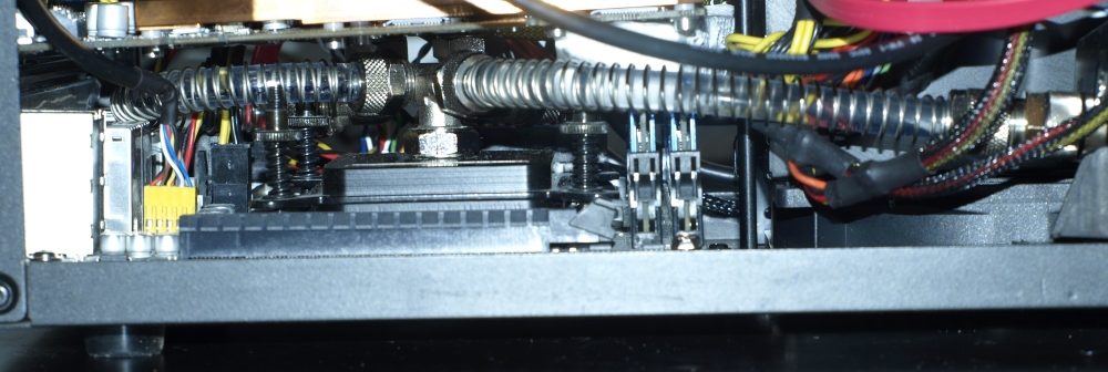 Das Verschlauchen des gesamten PCs war dann der reinste Alptraum. Neu ziemliche unkooperative PVC-Schläuche und kaum Platz bei den Anschlüssen. Um 2:00 Uhr lief dann erstmals die Pumpe und um 3:30 war die Wasserkühlung befüllt und dicht. Der kleine Ausgleichsbehälter hat das Befüllen zu einem Geduldsspiel werden lassen.
