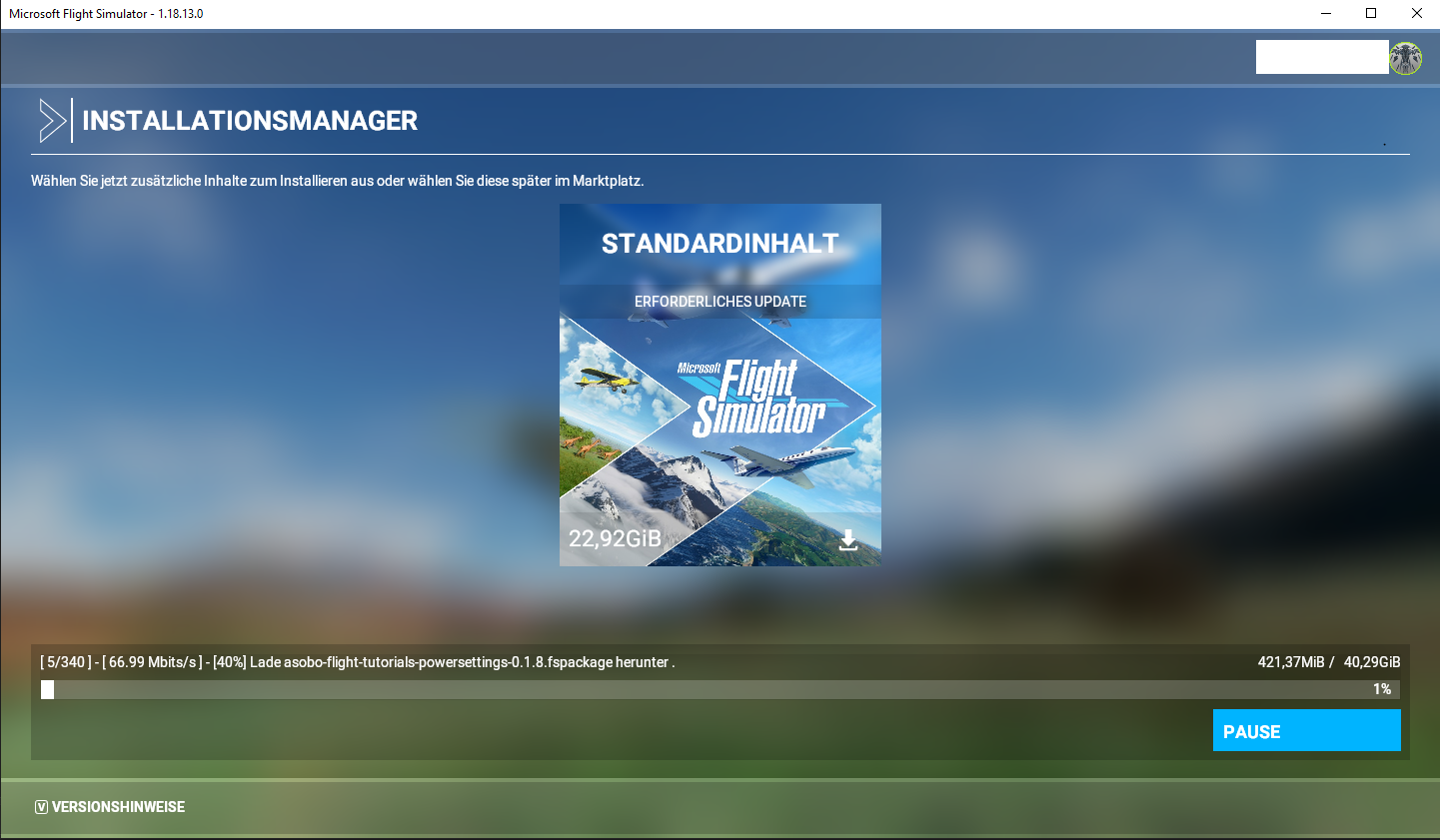 Nun den MSFS wieder gestartet und mir wurde ein 22,92GB großes Update angeboten.
