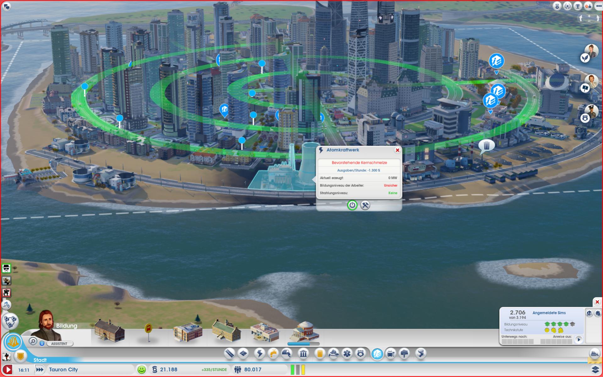 Das tut an dieser Stelle eigentlich nichts zur Sache. Fakt ist, dass ich das AKW mit einem Bildungsgrad von 2 gebaut habe und alles i.O. war. Als mein Bildungsgrad auf 3 war hat das AKW plötzlich Probleme gemacht. Ich hab dann mein ganzes Geld in noch mehr Bildung investiert und nun bei einem Bildungsgrad von 4 fliegt mir das Dingens um die Ohren? Das macht halt so überhaupt keinen Sinn.Big Ray schrieb:Naja, 80k Einwohner, kein Geld auf dem Konto, aber schon ein AKW. Da vermute ich mal, Du läßt Dir zu wenig Zeit beim Aufbau, willst alles auf einmal und reißt die Stadt zu schnell hoch.