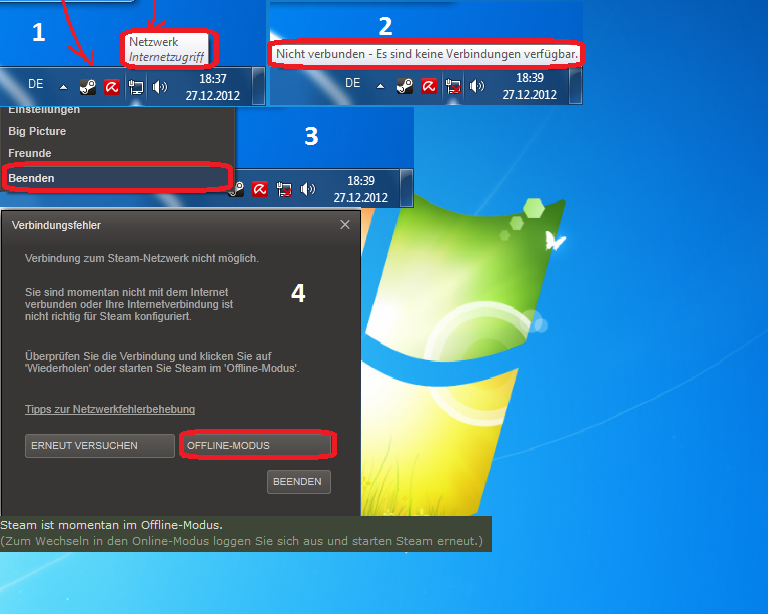 Ach. Ist das so? Das Tolle am Steam Offline-Modus ist, dass du erst Online sein musst um darin wechseln zu können. Toll, was? Keine Ahnung welcher Volldepp sich das hat einfallen lassen.