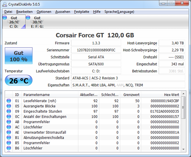ich habe mir eine neue 256 GB Samsung 830 SSD gekauft. Die hat gegenüber meiner Crucial 256 GB einen Zähler mit dabei wie viel Gbyte insgesamt geschrieben worden sind.