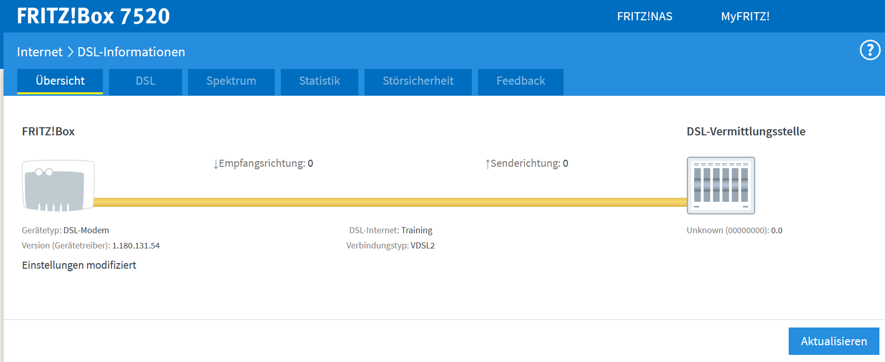 Bild 1.) Gelber Status DSL TRAINING beginnt, und am ende funktioniert es trotzdem nicht