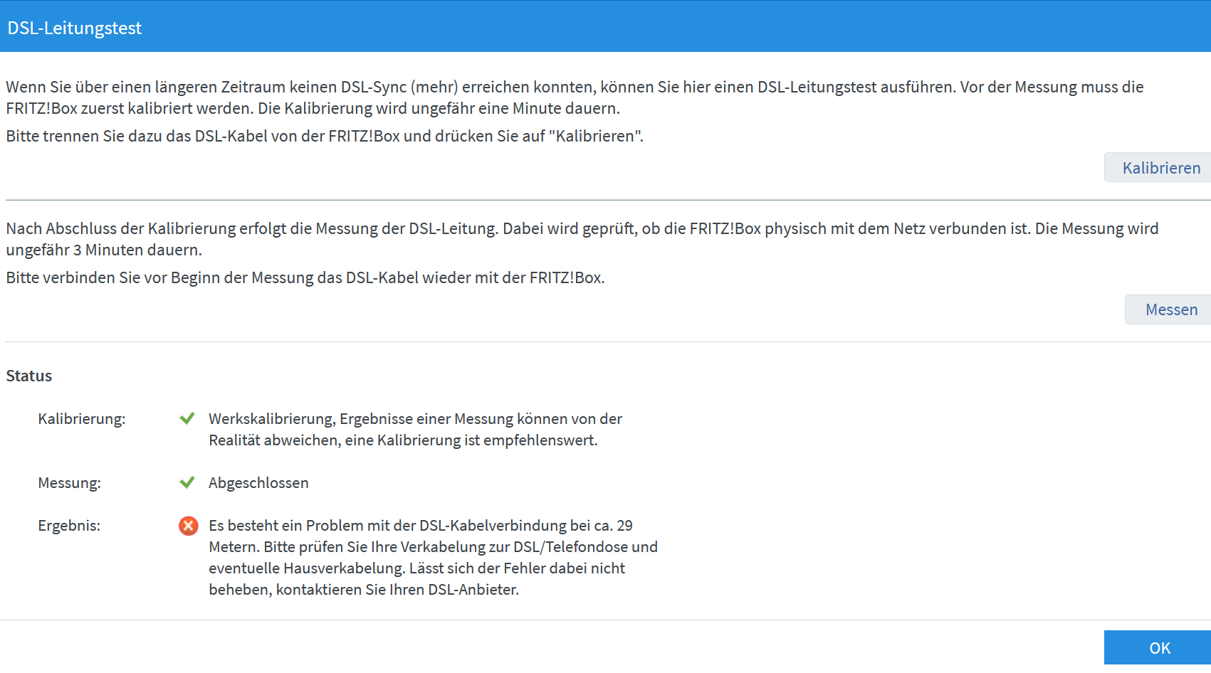 Zum Thema kein DSL Signal hier entsprechende Tests der Fritzbox