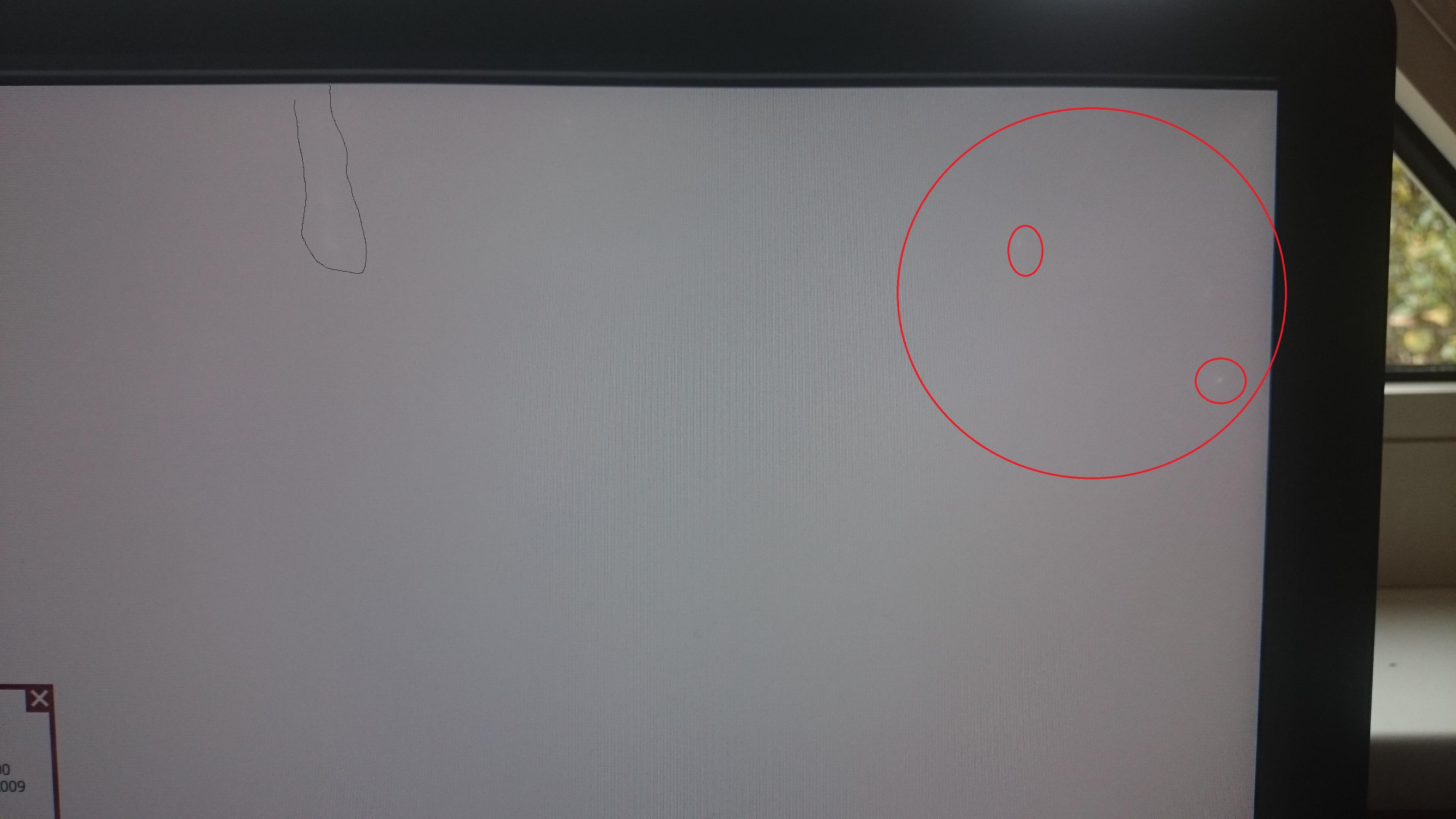 Mir ist heute aufgefallen, als ich mein HintergrundBild gewechselt habe, dass mein Monitor rechts oben ein paar leuchtende Punkte hat und auch ein größeres leuchtendes "gebilde" was aber schwer zu fotografieren war...