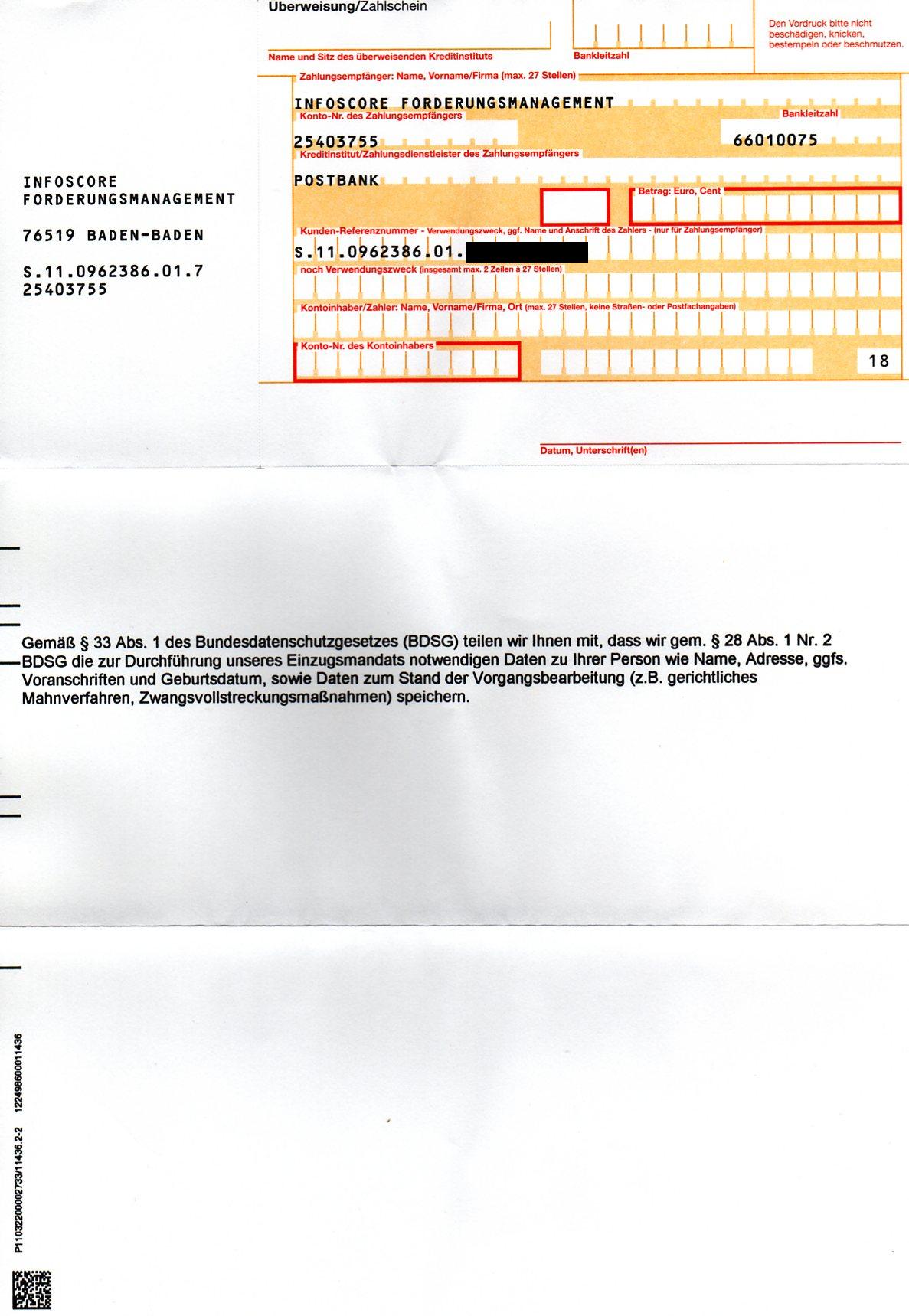 Es geht darum, ich hab von dieser Firma http://schuldnerservice.infoscore.de einen Brief bekommen mit ner Zahlungsaufforderung in höhe von 1600€.