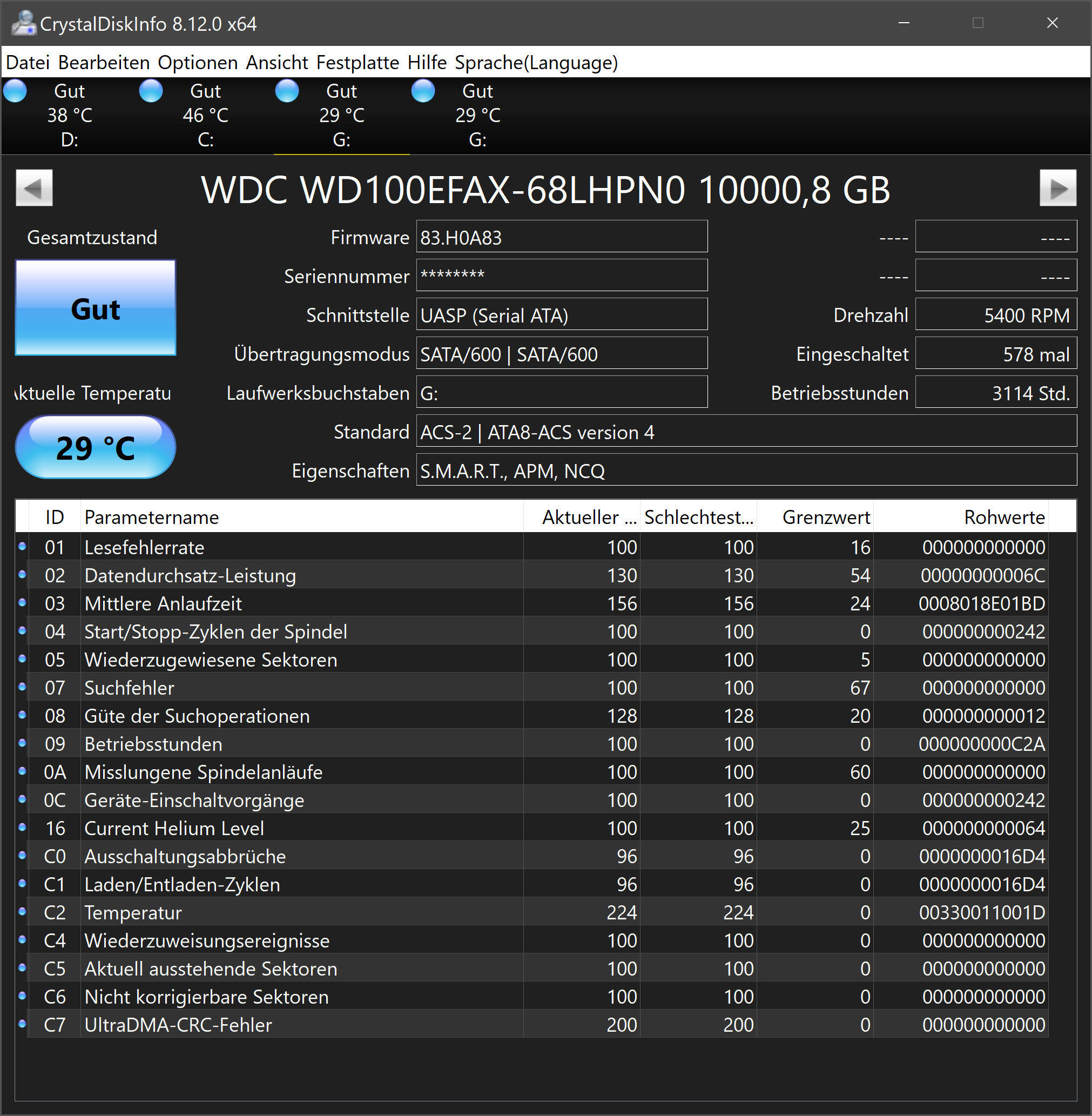 Ich bin erstmal sehr froh das alle meine Videos und Daten von der 10 TB WD Red noch vorhanden sind und funktionieren, ich will aber nur wissen, ob beide Platten einwandfrei funktionieren bzw. ob ich mir Sorgen machen muss oder nicht.