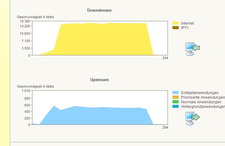Bei der Fehlersuche ist mir aufgefallen, dass bei Dateidownloads immer der Upload gleich proportional läuft, d.h. wenn ich was downloade (BSP. Datei bei Computerbase) und nur ein PC hängt dran und nimmt die vollen 16000, dann wird der Upstream ebenfalls voll mitgenutzt (Siehe angehängte Grafik). Ist das richtig so ?