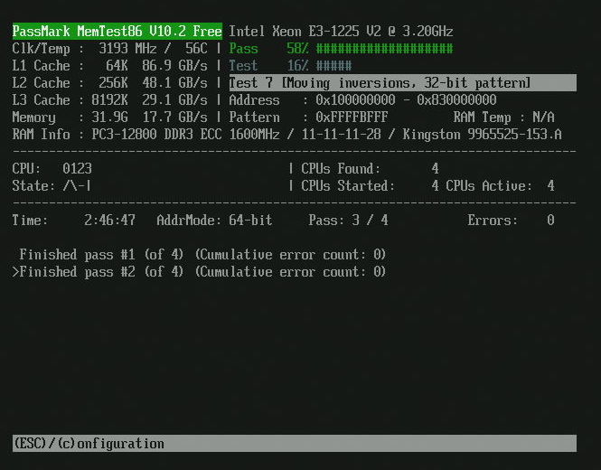 Also MemTest rausgekramt (4.37) und lass das jetzt laufen.