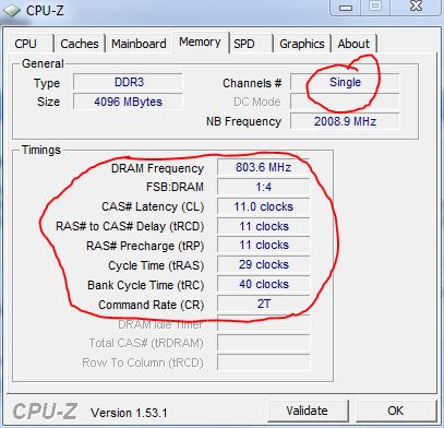 Erstmal taktet der RAM auf 800MHz, aber es müssten eigendlich 1600 MHz sein.