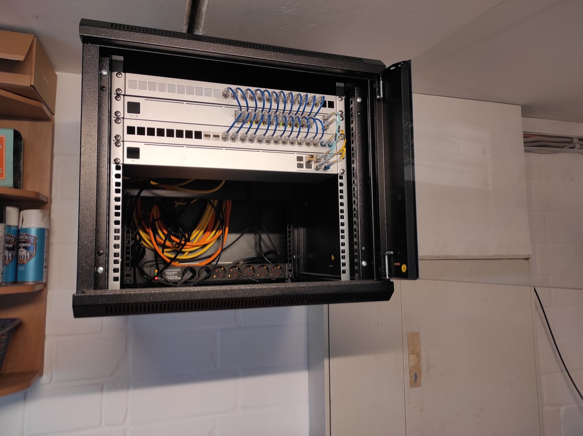 Zuhause habe ich einen großen Resthof der über ein Nebengebäude verfügt mit weiterer EDV wie einem zweiten Großen Rack mit LWL Uplink usw.