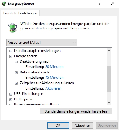 Was stellt ihr unter Energieoptionen ein, so ihr einen Desktop PC verwendet ohne eigenen Server zu betreiben?