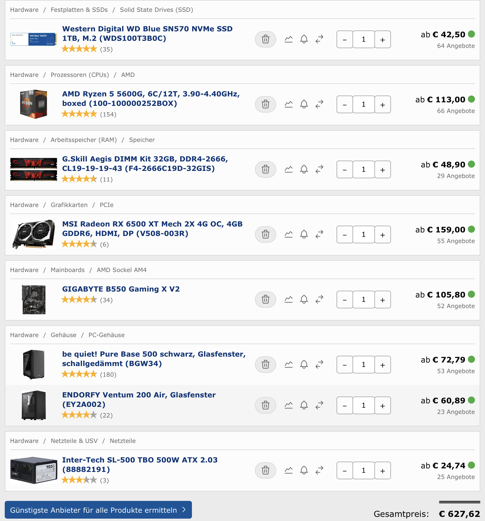 - selbst zusammenbauen (ich selbst habe nicht so viel Vorwissen, aber ich habe Freunde, die sich super damit auskennen und mich unterstützen)