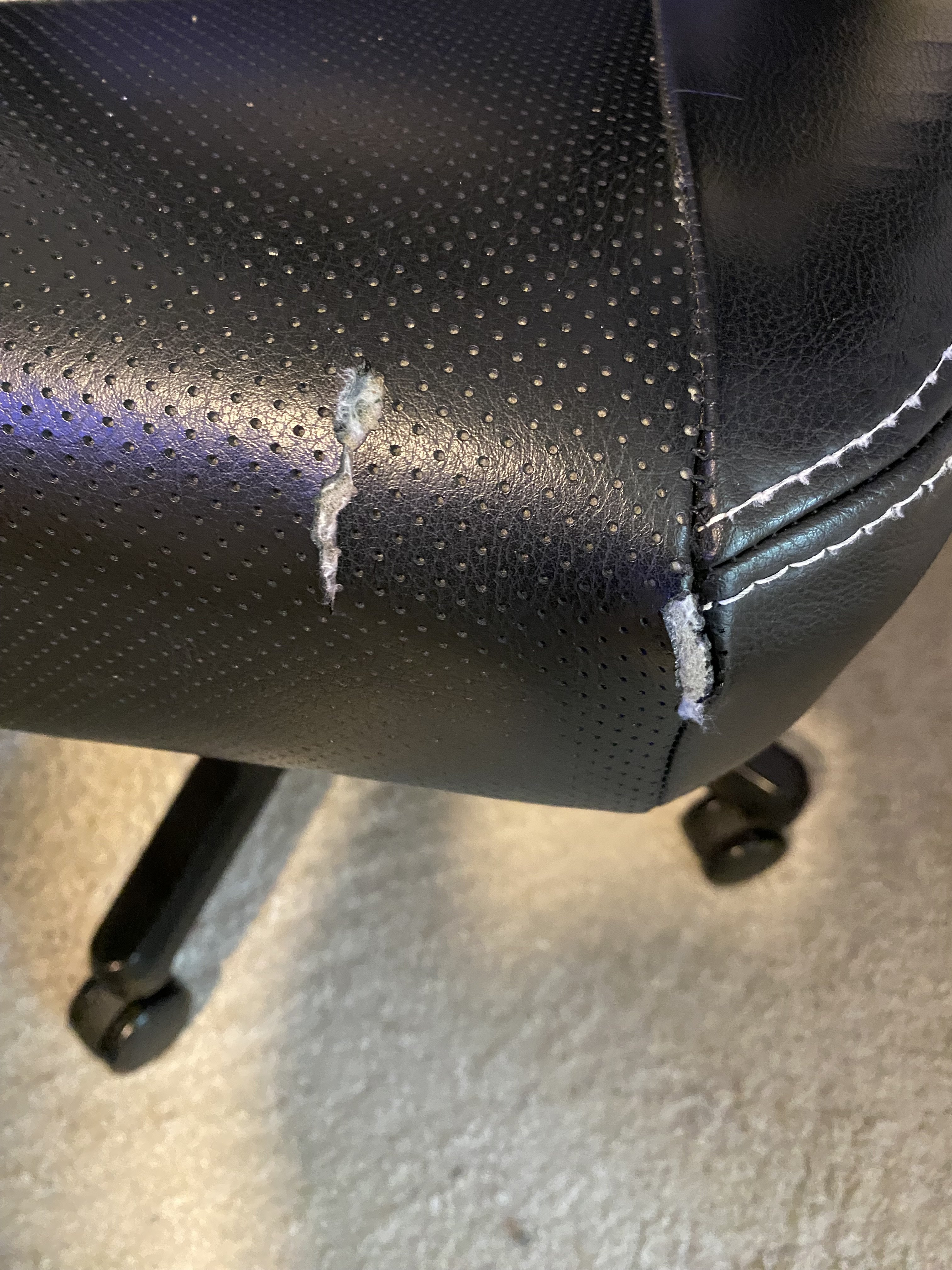 Leider hat mein Noblechairs Hero nach etwas mehr als 2,5 Jahren nun Risse in der Sitzfläche.