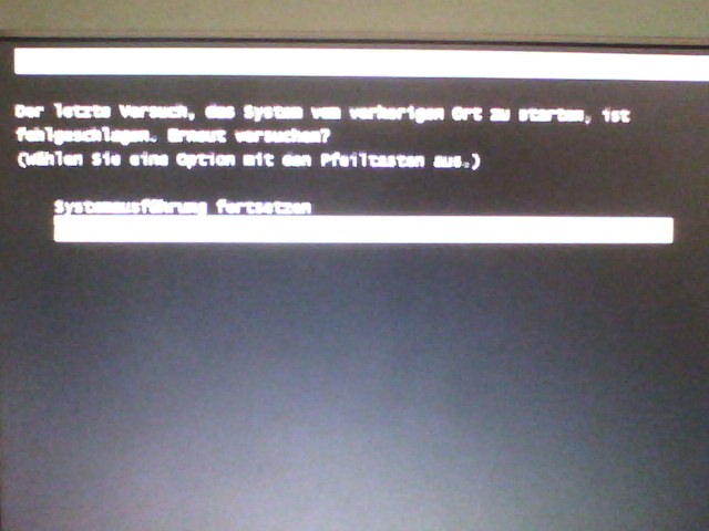 ich habe folgendes Problem: Nachdem mein Bruder meinen PC vermutlich in den Ruhezustand geschickt hat, kann jetzt die vorherige Sitzung nicht wiederhergestellt werden. Wichtige Daten sind keine verlohren gegangen, aber wenn ich jetzt den Pc anschalte erhalte ich die im Anhang verlinkte Meldung. Und leider funktioniert aus einem mir unbkannten Grund die USB 2.0 Tastatur nicht, vermutlich werden die Treiber nicht geladen.