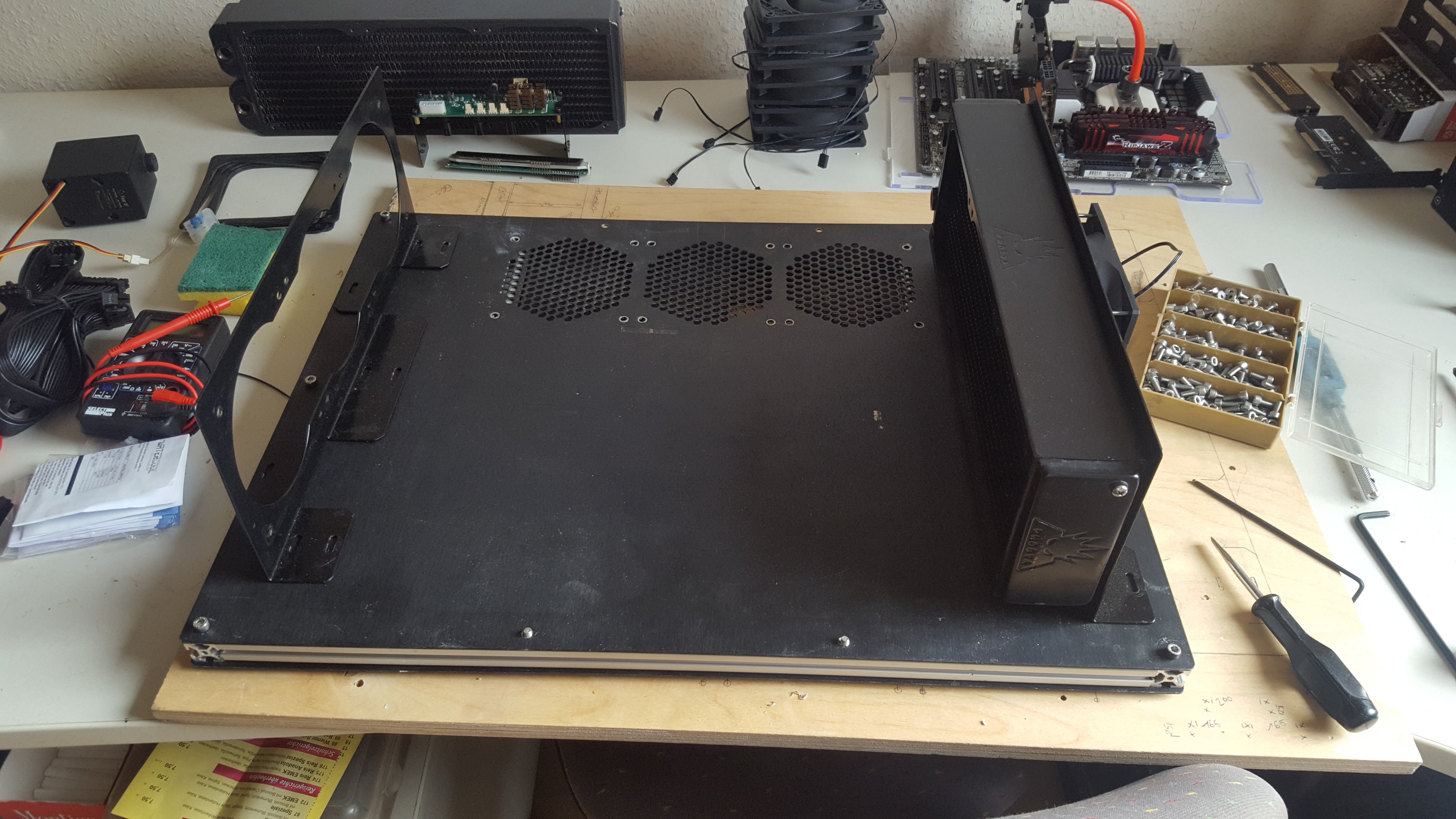 Ich habe vor mein neues Case aus 20x20mm Alu Profilen und den Seitenplatten des XSPC H1, sowie der Mainboardaufnahme des H1 zu fertigen.
