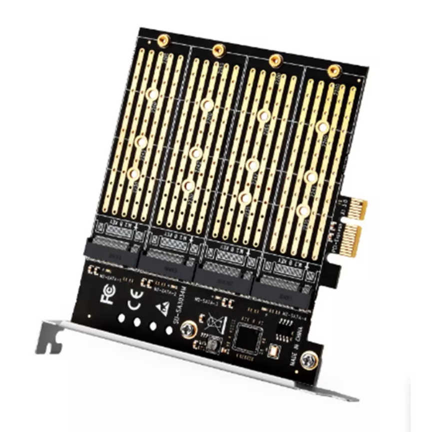 Die Boards, die 4 M.2 Steckplätze haben kannst Du an einer Hand abzählen. Von Shared PCIe Lanes gar nicht erst reden...