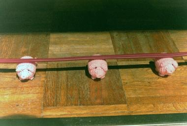 Gradezu eine Offenbarung ist die universelle Einsetzbarkeit des Haekelschweins, z.B. als Netzfilter oder in der Schallplattenreinigung. Herkömmliche Hifi-Tuningmaßnahmen sind hingegen immer auf wenige Einsatzmöglichkeiten beschränkt. Wenn mich das ungewöhnliche Design zunächst irritiert hat, was ich offen zugebe, so finde ich es nach genauerem Hinsehen als gradezu logisch. Im Innneren des Schweines befindet sich ein extra breitbadiger Resonanzabsorber aus einem speziellen Kunsstoff, welcher störende Schwingungen durch Reibung in Wärmeenergie umsetzt, die wiederum vom Haekelschwein durch die rosa Farbe an die Umgebung abgegeben wird. Das um den Kunstoffkern herumgeflochtende Spezialgarn ist nicht einfach nur gehaekelt, wie der Name Haekelschwein denken lassen würde, sondern durch ein spezielles Flechtmuster werden elektromagnetische Strahlen neutralisiert, besonders wenn das Haekelschwein mit dem Ringelschwanz irgendwo angeschlossen wird. So kann das Haekelschwein z.B. störende elektrische Abstrahlungen einer Halogenbeleuchtung neutralisieren, wenn es einfach mit dem Schwanz daran befestigt wird.
