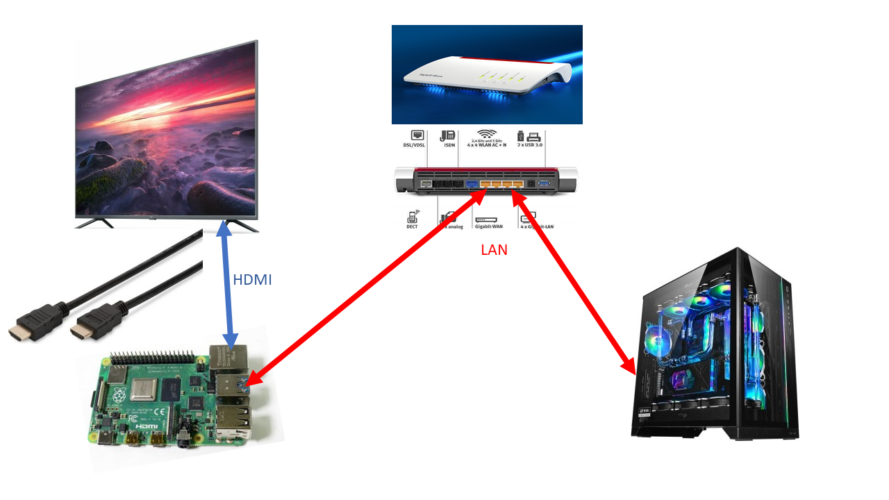 Könnte man denn nicht das Bild via OBS und NDI-Script (also per LAN) auf den Fernseher bekommen?FiRAS schrieb:Da Android auf dem RPi4 derzeit kein Video decoding bietet und Sky Go unter Linux meines wissens nach nicht läuft kommst du wohl nicht drum rum ne Android TV Box oder nen Rechner an den TV anzuschließen.