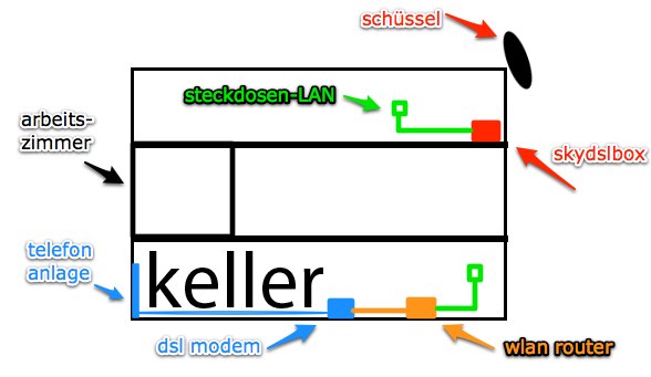 Die Anlagenkonstruktion ist hier auch etwas komisch, das DSL Modem ist im Keller an den Analoganschluss gepinnt, der Rest des Hauses ist ISDN.