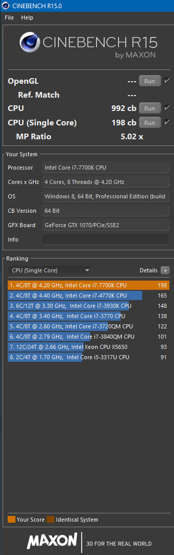 Der 5820k spuckt 165 Punkte im Realbench Single aus, der 1700x (3.9ghz) damals hatte noch 151 oder so.