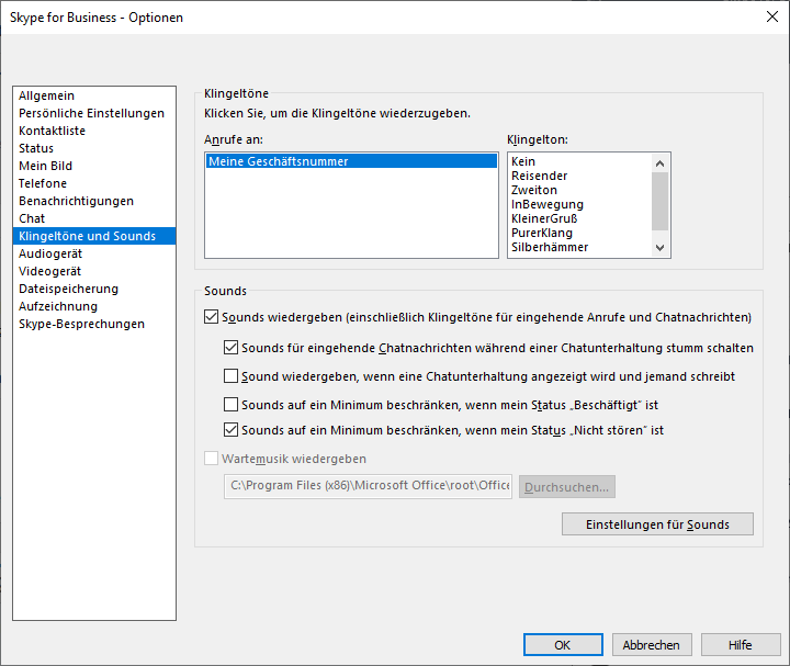 Ist jetzt zwar aus Skype for Business (Extras > Optionen), aber vielleicht ist das ja beim normalen Skype ähnlich ("Sound wiedergeben, wenn eine Chatunterhaltung angezeigt wird und jemand schreibt").