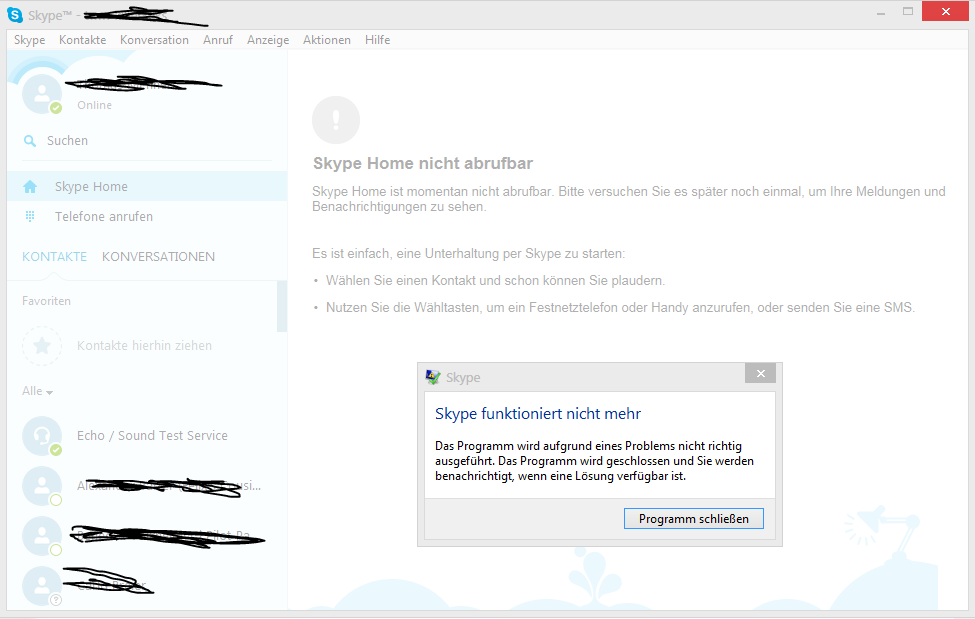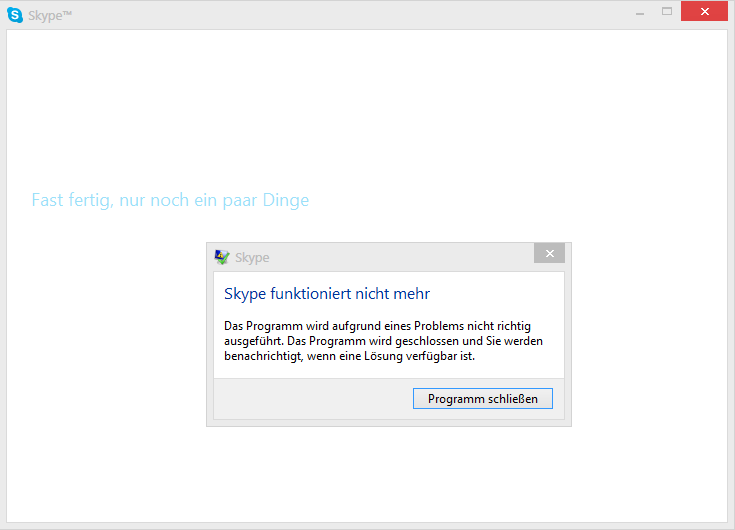 Ich habe Skype bereits 2x restlos entfernt, auch Dokumenten und AppData-Ordner gelöscht, PC neugestartet und es danach mit dem aktuellsten Setup installiert. Hat keine Abhilfe gebracht.