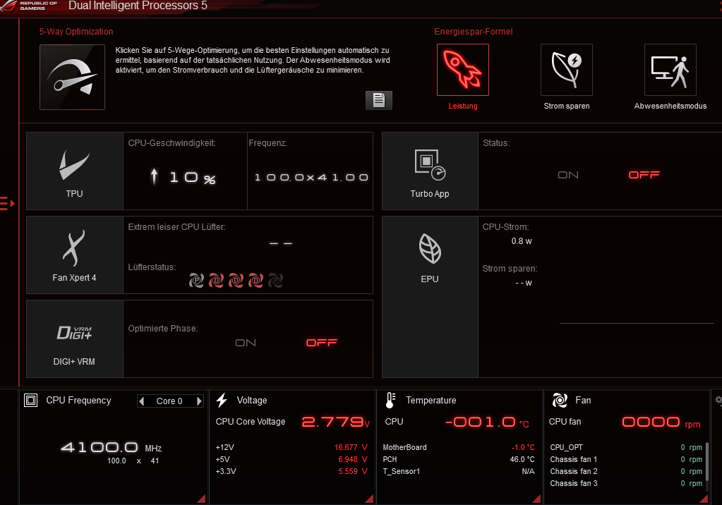 Wenn ich ins ASUS AI suit 3 gehe und mir nach einem Sleep die Hardware sensoren anschaue, dann liefern die Sensoren (vor allem der Temp. Sensor der CPU) total blödsinnige Werte. Dies sehe ich mehr als zusammenhang mit 1) aber davon habe ich zumindest eine Aufzeichnung.