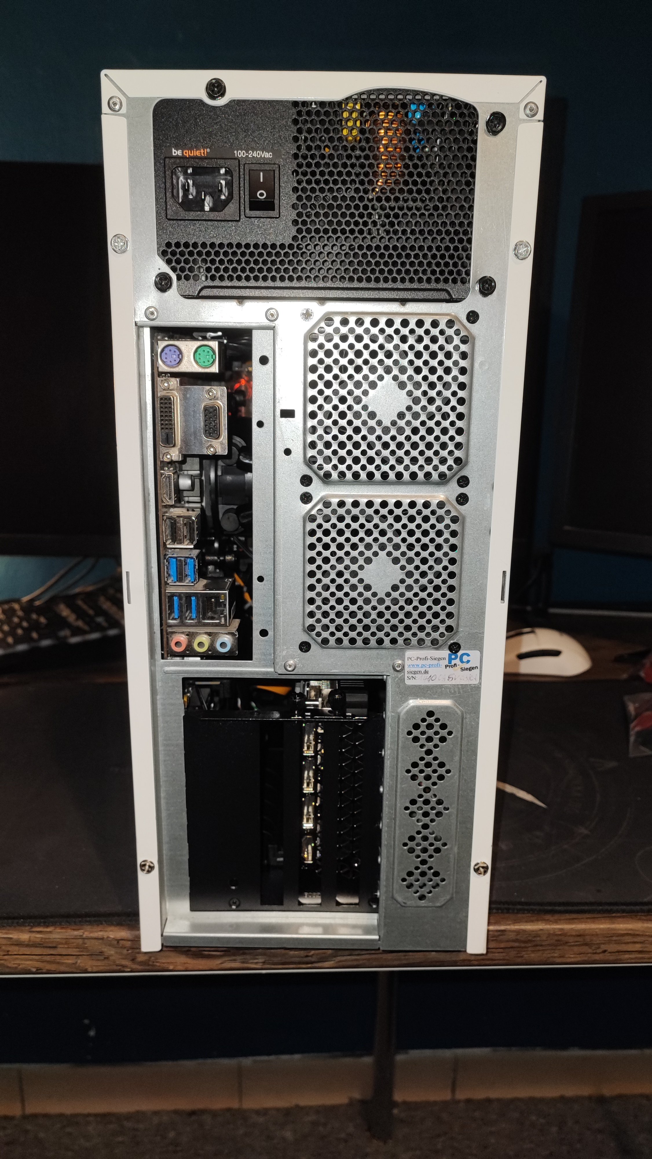 Die Rückwand hat nun 2-3 kleine Löcher, was mich zugegeben ziemlich nervt, muss mir da etwas einfallen lassen, eventuell einen Staubfilter vor den Löcher oder so, muss mal schauen.