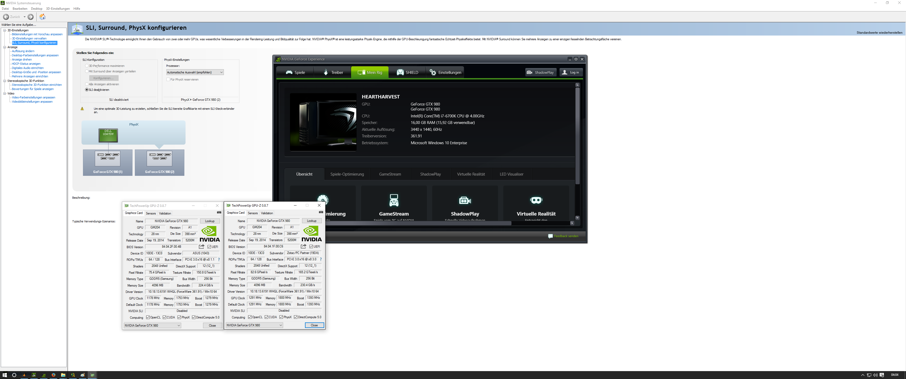 Habe mir zu meiner vorhandenen GTX980 eine 2. dazu geholt für SLI. Diese Tatket lediglich beim Speicher etwas niedriger. Habe die neue eingebaut und den neuen Treiber installiert.