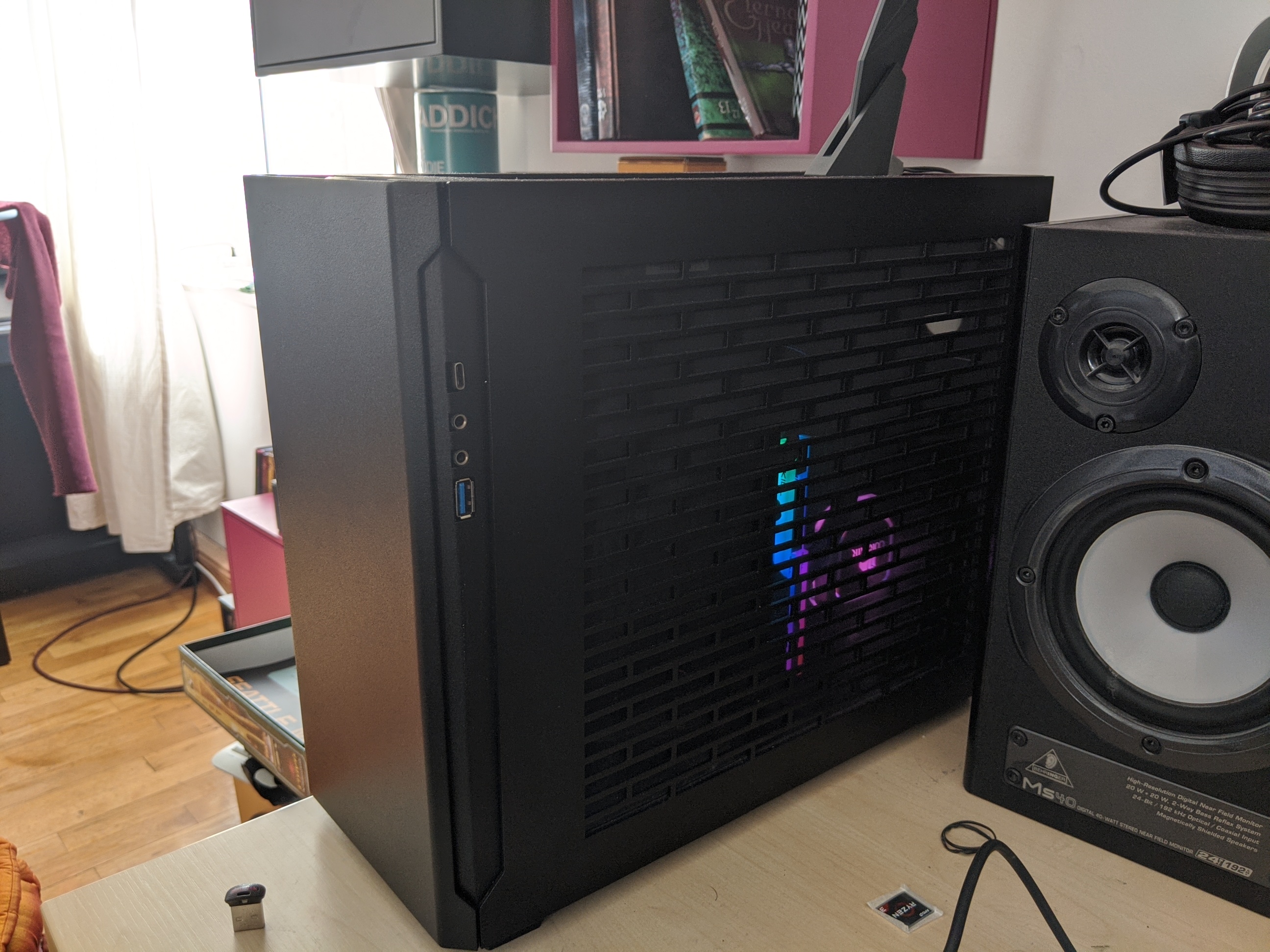 Bei mir steht es in schwarz mit perforierten Seitenteilen und magnetischen Staubfiltern. Ich habe keinen Vergleich zu anderen Mini ITX Gehäusen, war aber bisher eigentlich sehr zufrieden damit.