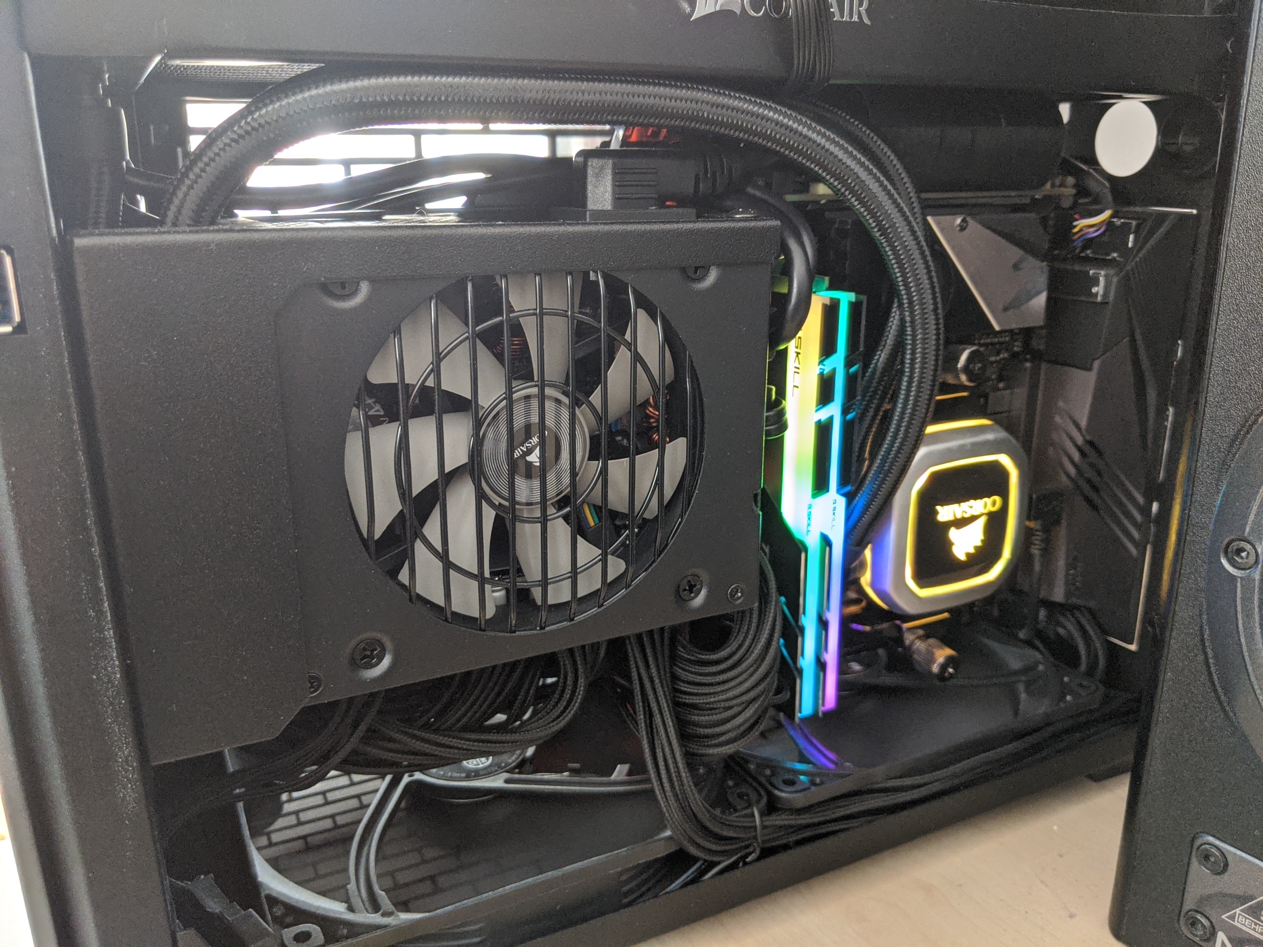 Der Einbau des Radiators am Deckel könnte einfacher sein. Das Eyeballing und herumprobieren bis zur richtigen Position/Konfiguration hat mich genervt. Ich hatte aber kein Problem die Schrauben zu erreichen (Verstehe auch nicht wo das Problem sein soll). Der Einbau der Corsair H115i ist bei mir in PULL-Konfiguration möglich. Da ich die Schlitze zwischen Lüftern und Radiator abgeklebt habe, bilde ich mir ein, dass es zur PUSH-Konfiguration keinen messbaren Unterschied gibt. Ja es ist eng, aber es geht.