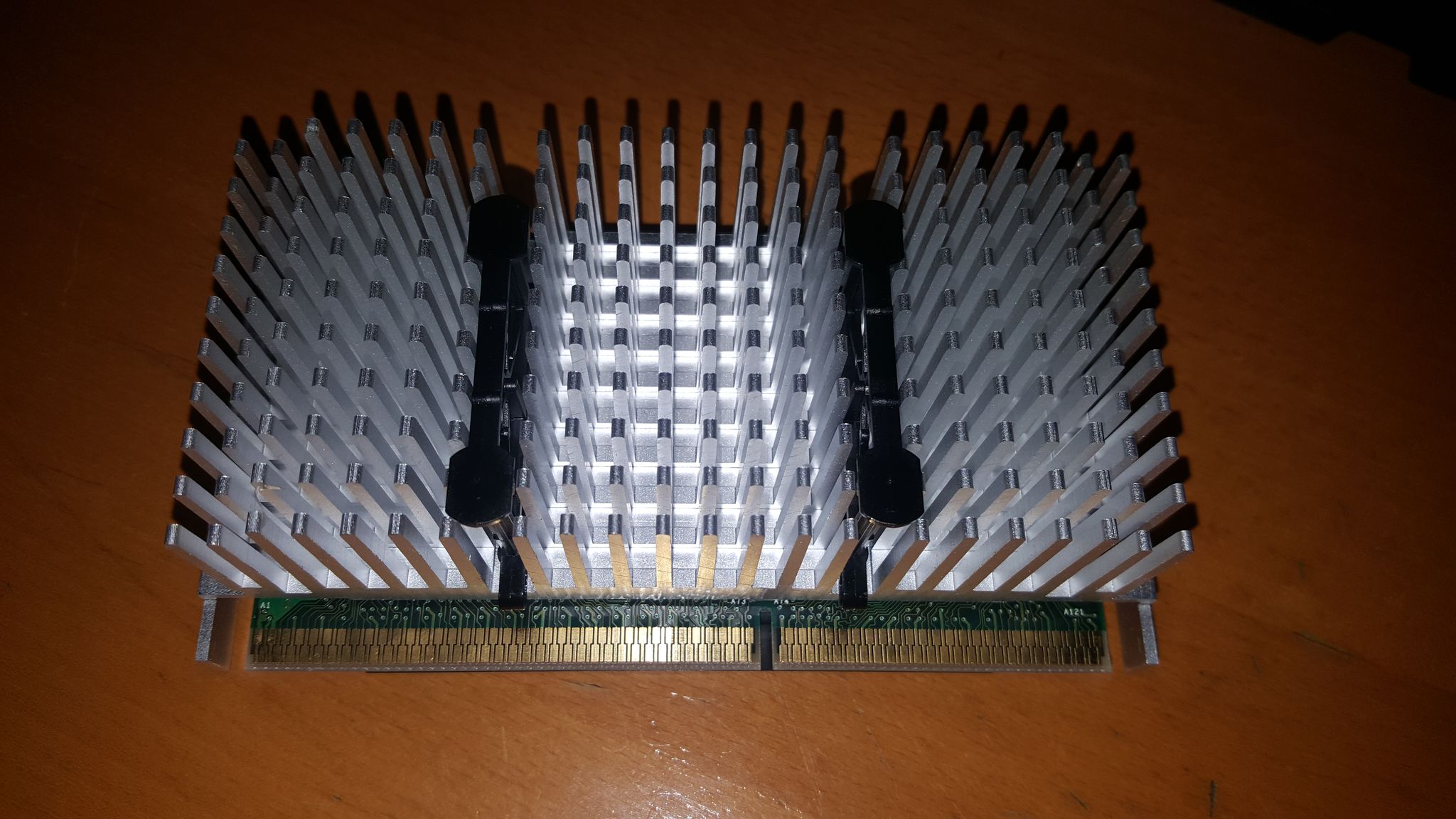 da morgen mein "neues" Slot 1 board kommt und ich meinen win98 rechner etwas umbauen will, möchte ich mal wissen ob es möglich ist, auf diese CPU einen Lüfter zu befestigen. mit schrauben wird es wohl nicht gehen, da die kühlrippen doch sehr weit auseinander sind. ist es überhaupt notwendig einen lüfter zu montieren 933MHz ohne lüfter könnte etwas heiß werden, oder