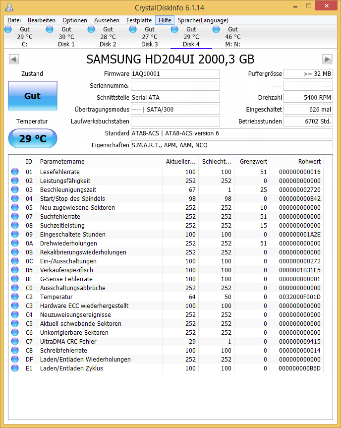 So schlecht war der Zustand im letzten Screenshot nicht, aber Vorsicht schadet natürlich nicht. Eigentlich sollte man genau dafür ja auch immer regelmäßig Backups anlegen und zwar auf Medien, die in einem anderen Gehäuse stecken, wie ein NAS, USB Platten, Tapes, Cloud, etc.Katzenjoghurt schrieb:Sinnvoll ist es deshalb, da ich nicht 100% sicher sein kann, ob die Platte überhaupt