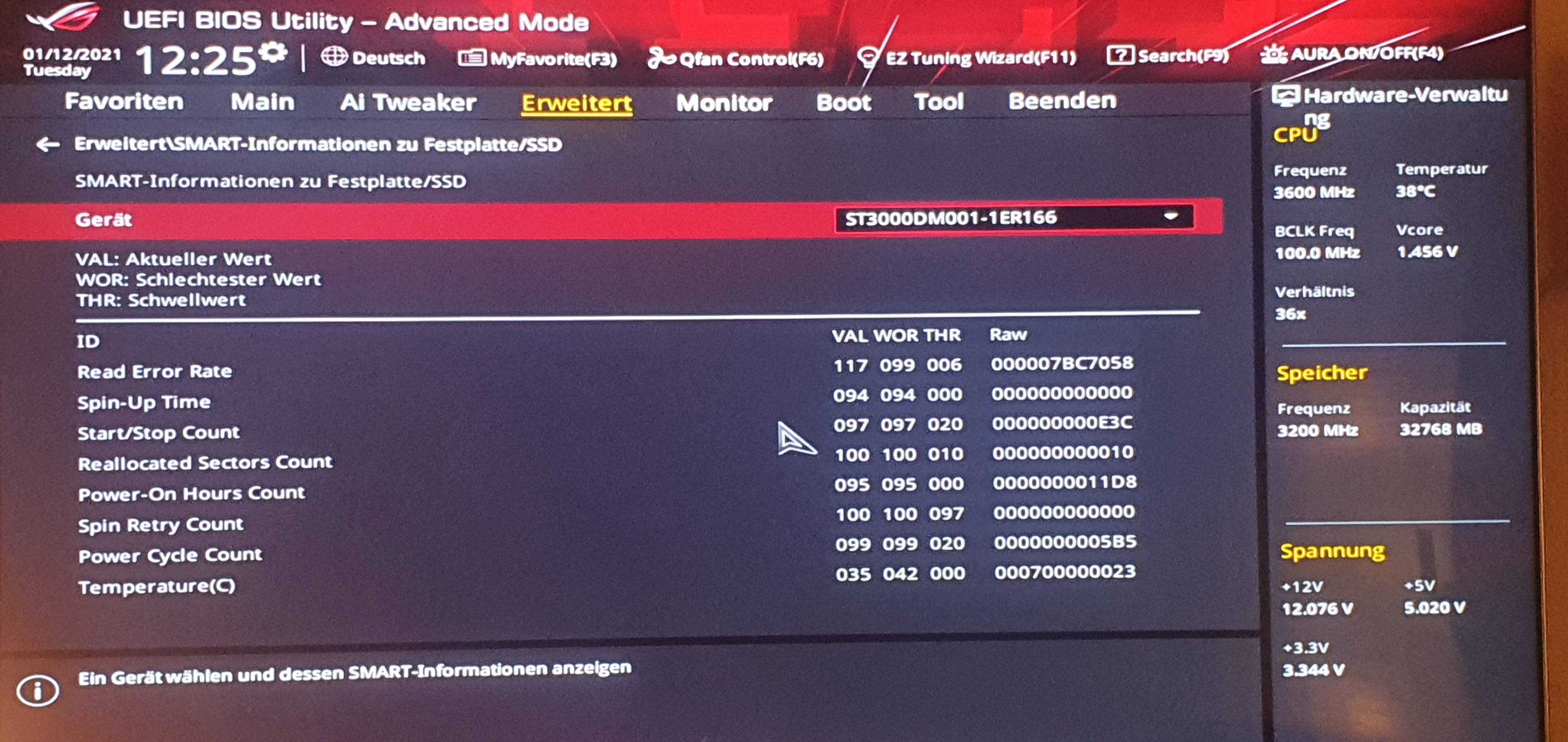 Im UEFI BIOS ist die SMART Funktion aktiviert. BIOS ist auf dem neusten Stand.