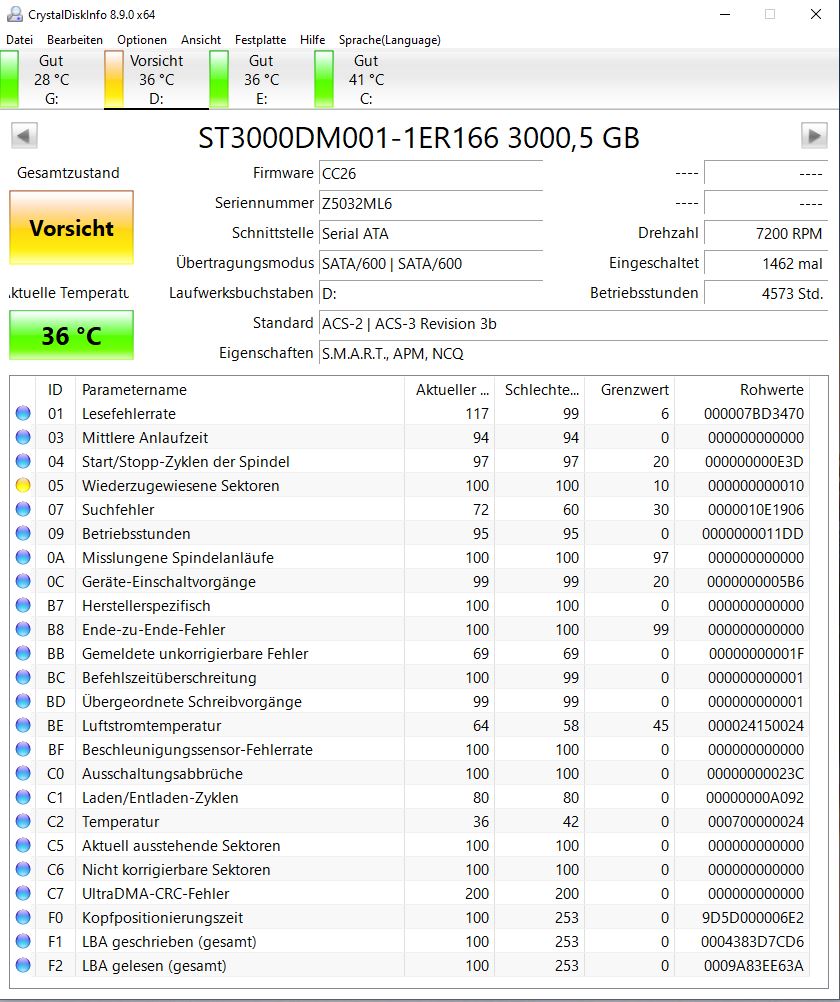 - CrystalDiskInfo findet keine einzige der Platten (auch mit erweiterter Festplattensuche nicht)