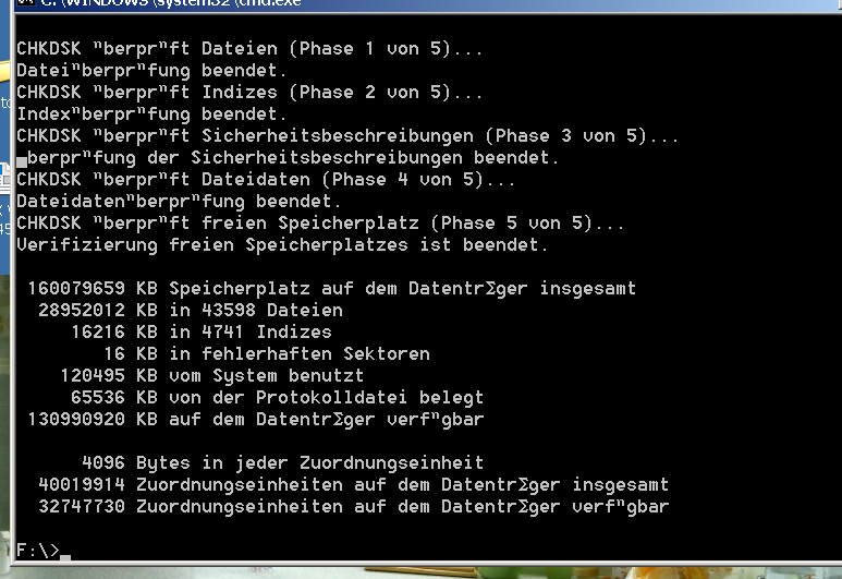 Gut ich werde mal chkdsd F:/r ausführen und soll ich die Platte vorher formatieren oder so lassen