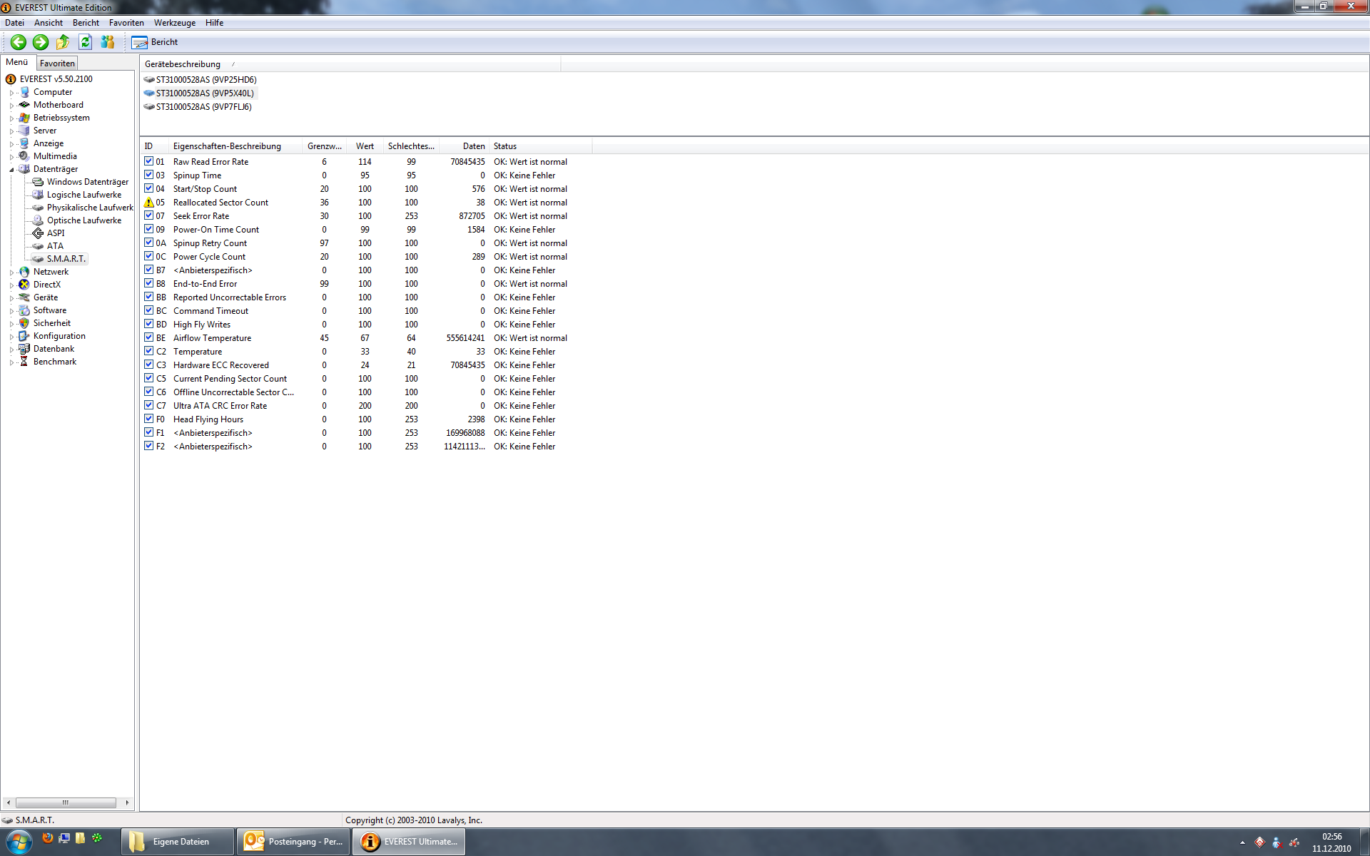 Seatools hab ich durchlaufen lassen, da hatte die Platte den Smart-Test bestanden. Wie ist das jetzt zu bewerten, ist die Festplatte jetzt defekt oder nur ein Fehler in Everest? Ein Screenshot hängt dran. Danke vorweg!