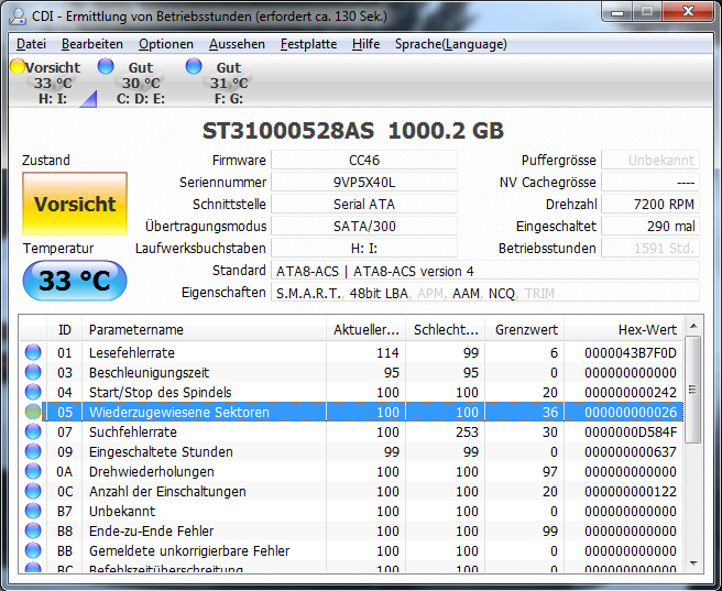Habe ich gerade gemacht, bei einer Platte steht "Vorsicht!" Was auch kurios ist, der eingetragende Wert lautet da nicht 38 sondern 26 :D Irgendwie scheint jedes Programm die Werte anders zu interpretieren.