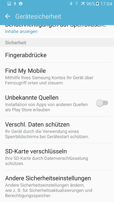 Unabhängig von dieser Thematik kann man auch bei Samsung nach wie vor die Speicherkarte verschlüsseln.
