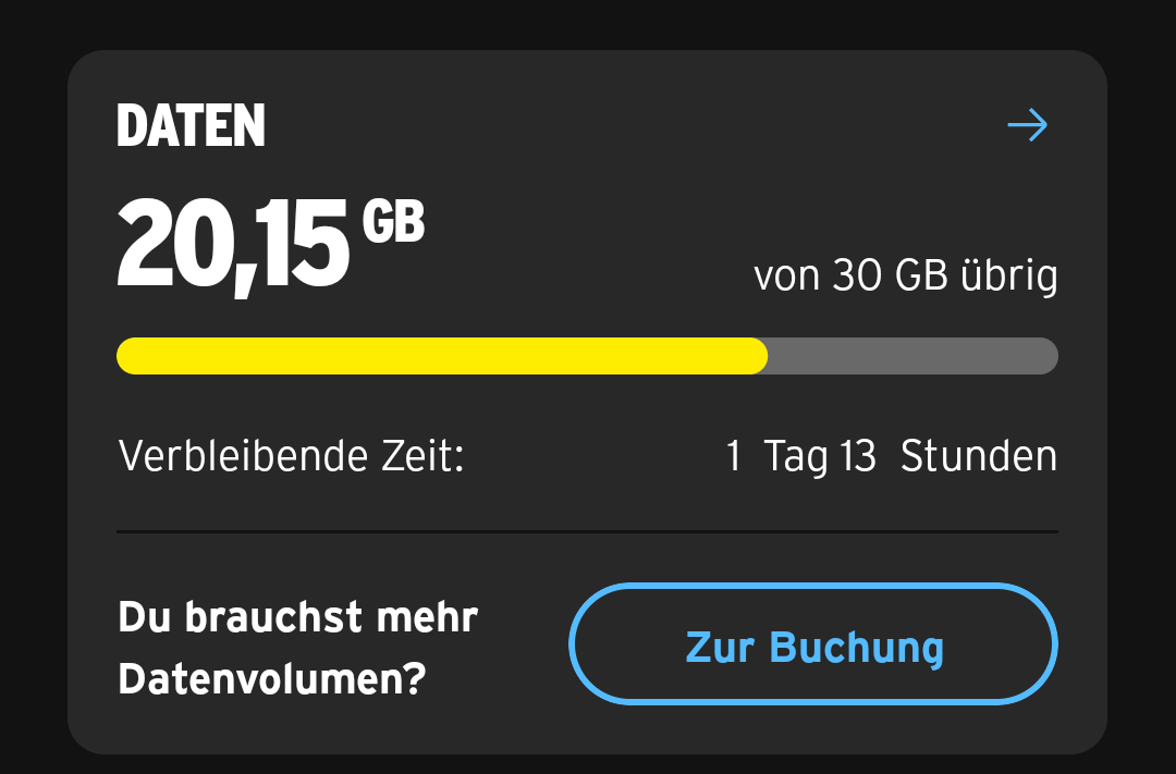 Ja es ist etwas teurer als die anderen und hat weniger Volumen, aber ich habe seit letztem Jahr zu Beginn nicht mal die 10GB verbaucht.