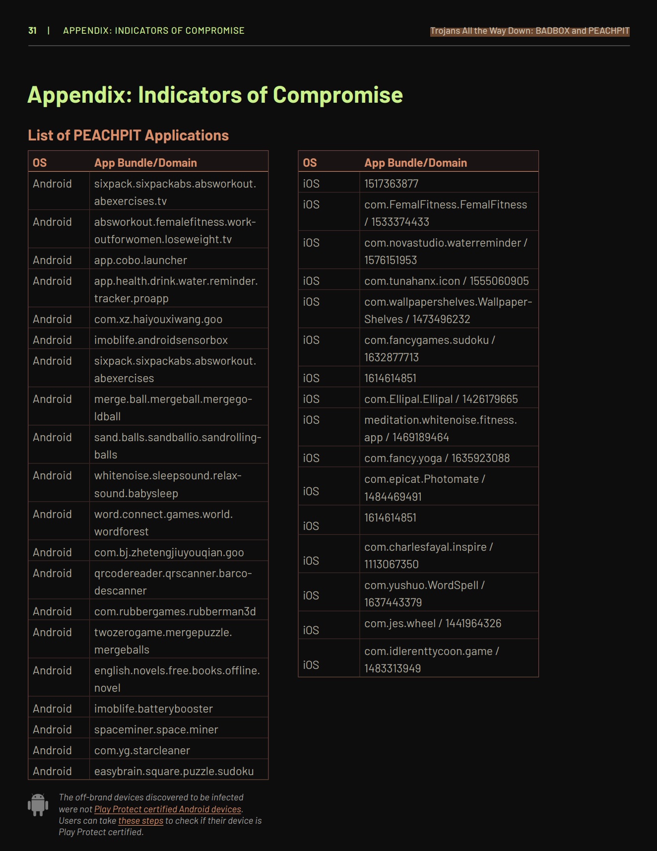 Bei der hohen Zahl der iOS Geräte die über die Installation einer App infiziert wurden, wurde ich doch hellhörig. Leider sind die Apps im Artikel nicht genannt, aber die kann man relativ einfach googlen. Habe mir dazu den Anhang der vermeintlich 16 Apps für iOS aus der verlinkten Quelle aus dem Artikel für iOS angeschaut und eine Tabelle erstellt. Eine App ID ist sogar doppelt genannt, daher sind es 15 Apps. Für Interessierte folgend
