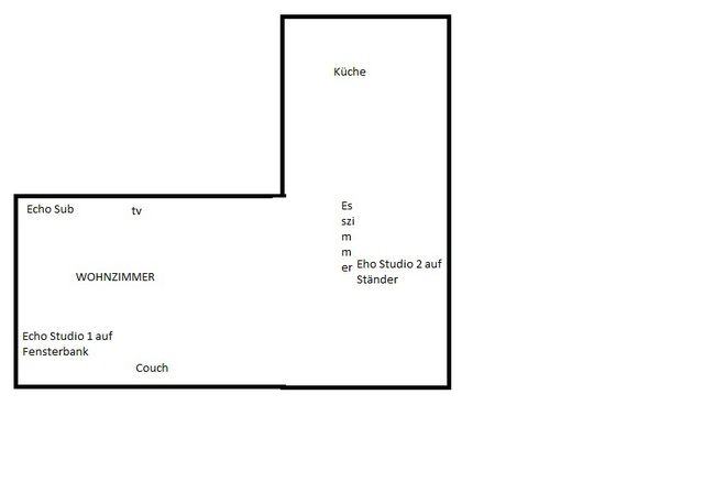 Die Smartspeaker sind wie auf der Skizze zu sehen im Wohnbereich verteilt.