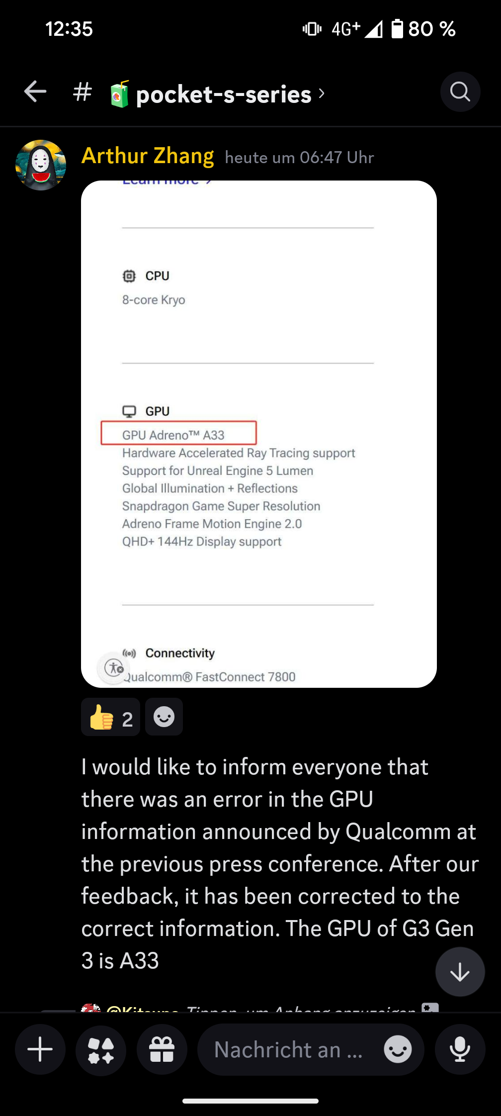 Mittlerweile hat QC bereits korrigiert, dass die GPU vom G3 Adreno A33 heißt. A32 ist die vom Vorgänger. Alles andere wäre auch komisch gewesen. Quelle: CEO von Ayaneo auf deren Discord.