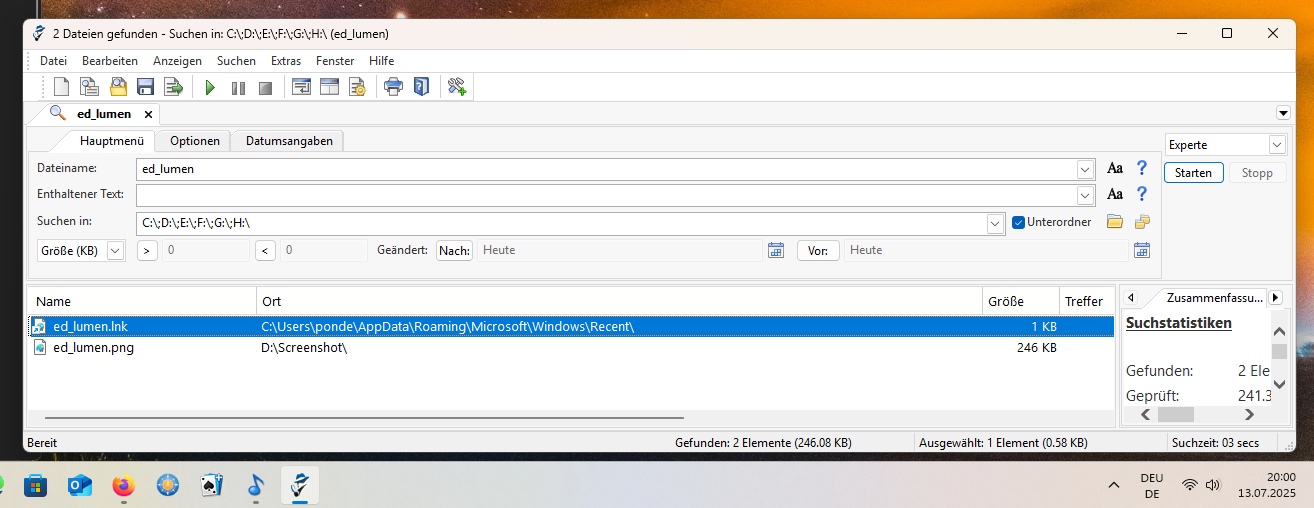 Siehe im Agent Ransack Screen, da wird es aneinender geschrieben. Logischerweise findet man dann das auseinander geschriebene nicht.