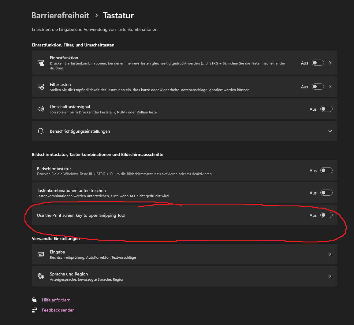 Wenn ich die Drucken Taste auf der Tastatur drücke hat Win7 einfach einen Screenshot gemacht. Wenn ich das jetzt bei Win11 mache geht das Snipping Tool oben am Bildschirmrand auf und ich muss erst etwas auswählen.